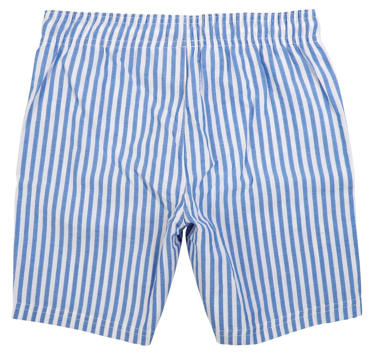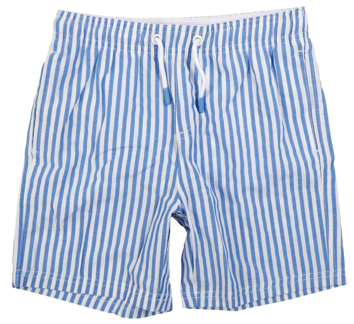 The Boys Striped Seersucker Swim Shorts bring classic style to swim days. Made from 100% polyester, they feature a timeless striped print, drawstring waistband for a secure fit, side seam pockets, and a breathable mesh inner lining for comfort in and out of the water.