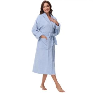 Indulge in ultimate comfort with our cozy, soft cotton terry robe. Perfect for lounging, this robe features two front pockets for convenience and a snug belt fit for added comfort. Whether you’re relaxing at home, the gym, spa, swimming pool, or hot tub, its highly absorbent and quick-dry fabric ensures you stay dry and comfortable. The relaxed styling makes it an ideal choice for unwinding after a long day. Embrace the luxury of relaxation with this must-have robe. Machine wash cold.