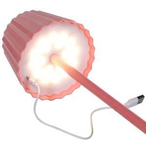 Light up your workspace with the Rechargeable Desk Lamp. Featuring touch control, dimmable lighting, and a sleek, modern design, it includes a USB cable for easy charging. Compact at 4 in x 4 in x 15 in, it is perfect for any desk or nightstand.