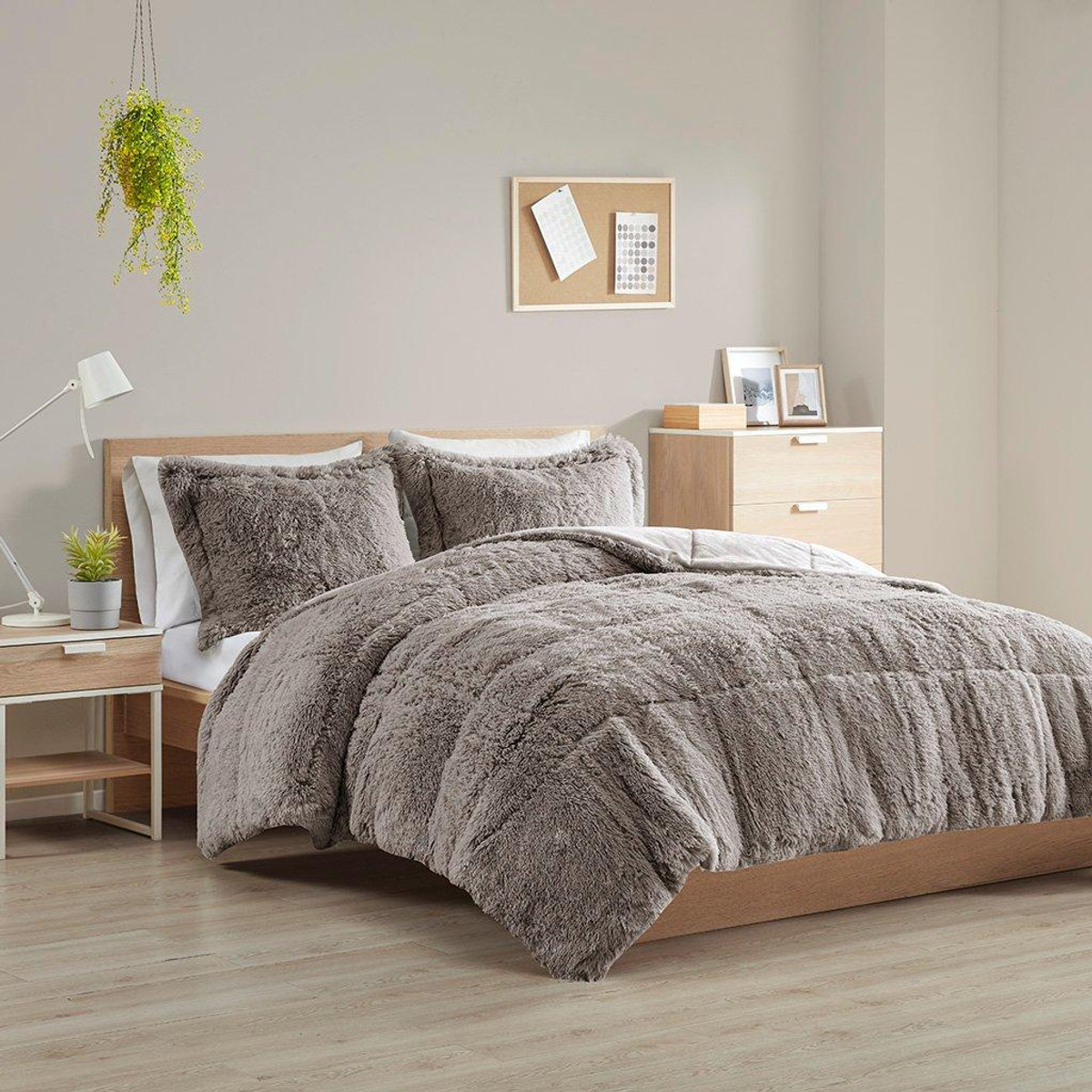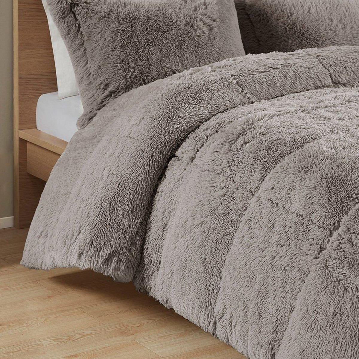 Upgrade your bedroom with the Intelligent Design Malea Comforter Set. Featuring shaggy long faux fur for a soft, modern look, this cozy set includes matching shams and a plush reverse for added warmth. Perfect for a stylish and comfortable sleep space. Machine washable for easy care.