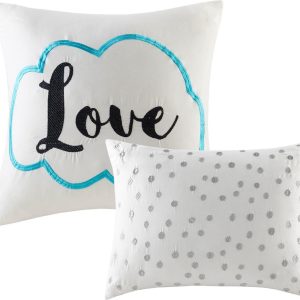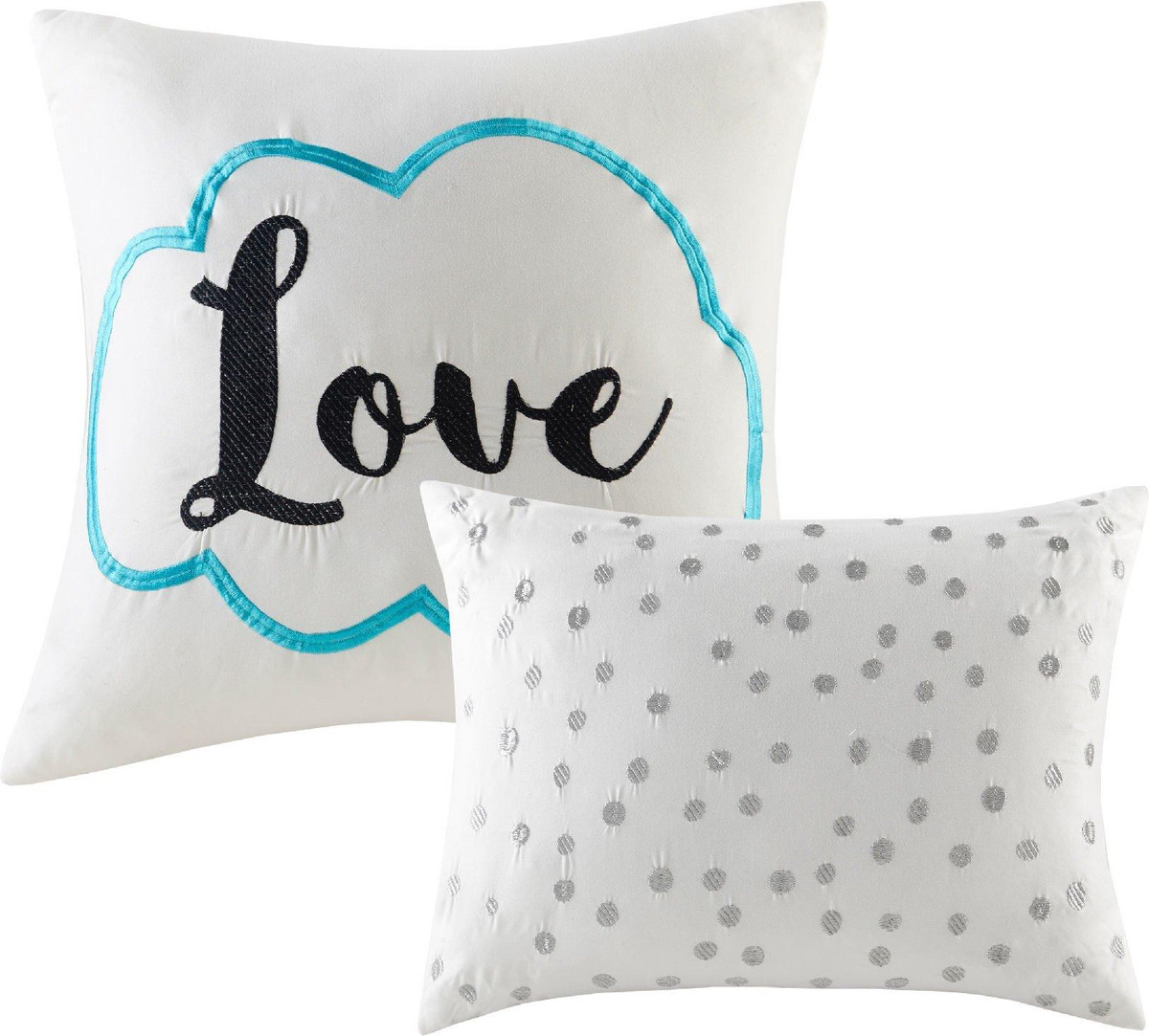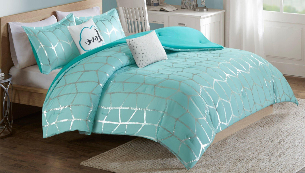 Add a touch of bold, chic patterns to your bedroom with the Intelligent Design Raina Comforter Set. This set features a metallic geometric design with a solid reverse. Set includes one comforter, two decorative pillows, and two pillow shams (one for twin size). Pillow measures 12”L x 16”W and 16”L x 16”W.