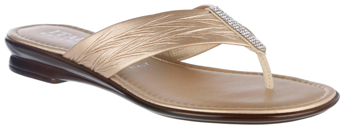 A quality pair of sandals by Italian Shoemakers that provide a stylish look. These sandals feature open toes, jewel accents, and comfort padded footbeds. Heel height approximately 1 in.