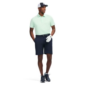 IZOD dedicates itself to modern sportswear that is bold and full of color. This IZOD golf polo shirt features a grid solid design on soft lightweight stretch fabric, 3-button placket, a roll-resistant spread collar, short sleeves, side slits hemline, moisture-wicking technology, UPF – 20, natural stretch, breathable, quick dry, sun protection, side slits at hemline, and a classic fit. Fabrication 100% polyester. Length measures approximately 30 inches from shoulder to hemline.