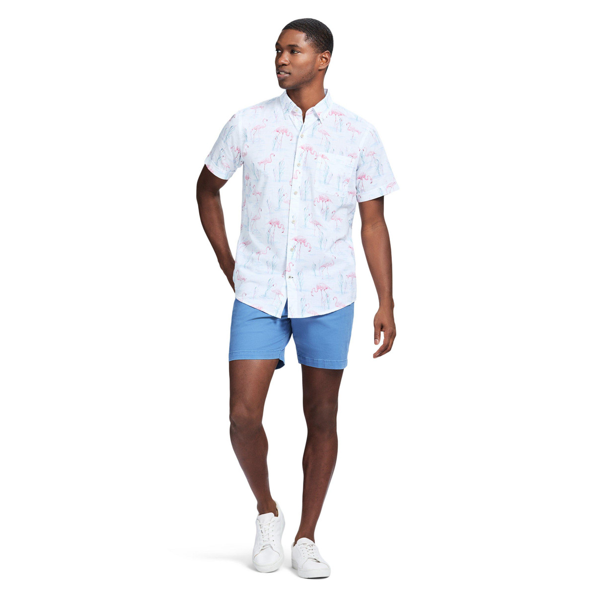 Casually cool and completely comfortable. With an athletic cut for an easy-to-wear untucked look, this short sleeve, button down wears like a shirt that’s spent afternoons in the sun. Its made from a cotton slub so its a true wash-and-wear shirt–grab it from the dryer, wrinkle-free. 100% Cotton.