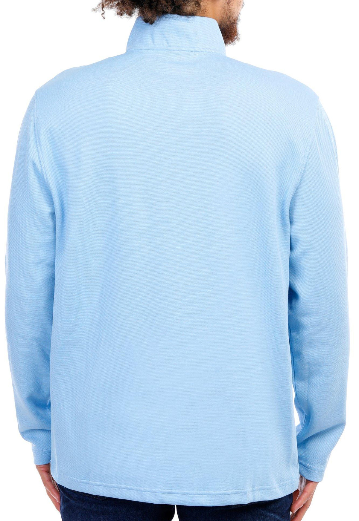 Add a new favorite to your outfits when the weather turns cooler in this dependable quarter-zip sweatshirt. It features a versatile solid color design, quarter zip neckline, soft cotton blend fabric, and an embroidered chest logo. Fabrication is 62% cotton and 38% polyester.