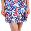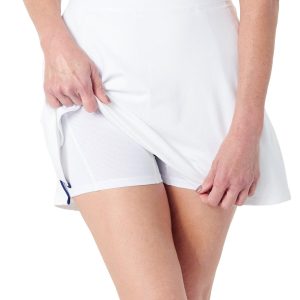 This performance stretch knit skort features a wide stretch waistband with tummy-shaping support for a flattering fit. The solid body is accented with contrast piping for a sleek, stylish look, while the contrast inner waistband detail adds a modern touch. Complete with a knit shorts mesh liner for comfort and coverage, this 17 in. skort is designed for both performance and style. Fabrication is 83% polyester, 17% spandex.