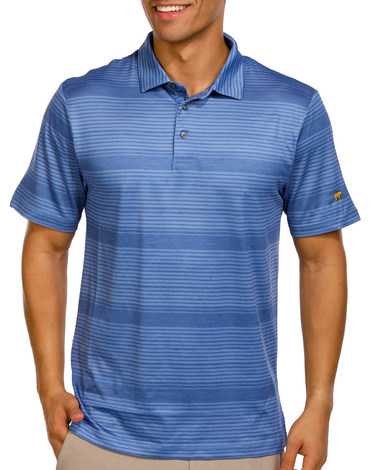 Stay sharp and protected in the Men’s Solid Striped Polo Shirt. Featuring a perforated exterior and solid stripe color, this polo offers short sleeves, a classic neckline, and an embroidered sleeve logo. Built with moisture-wicking fabric, UPF 40 protection, and enhanced stretch for all-day performance and comfort. Fabrication 95% polyester, 5% elastane.