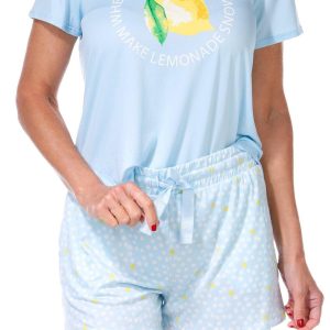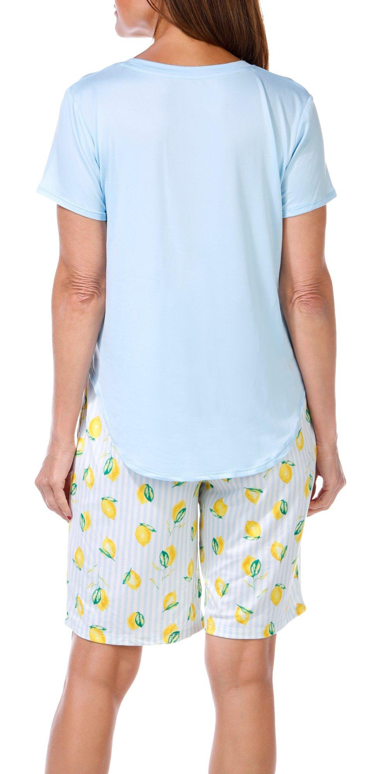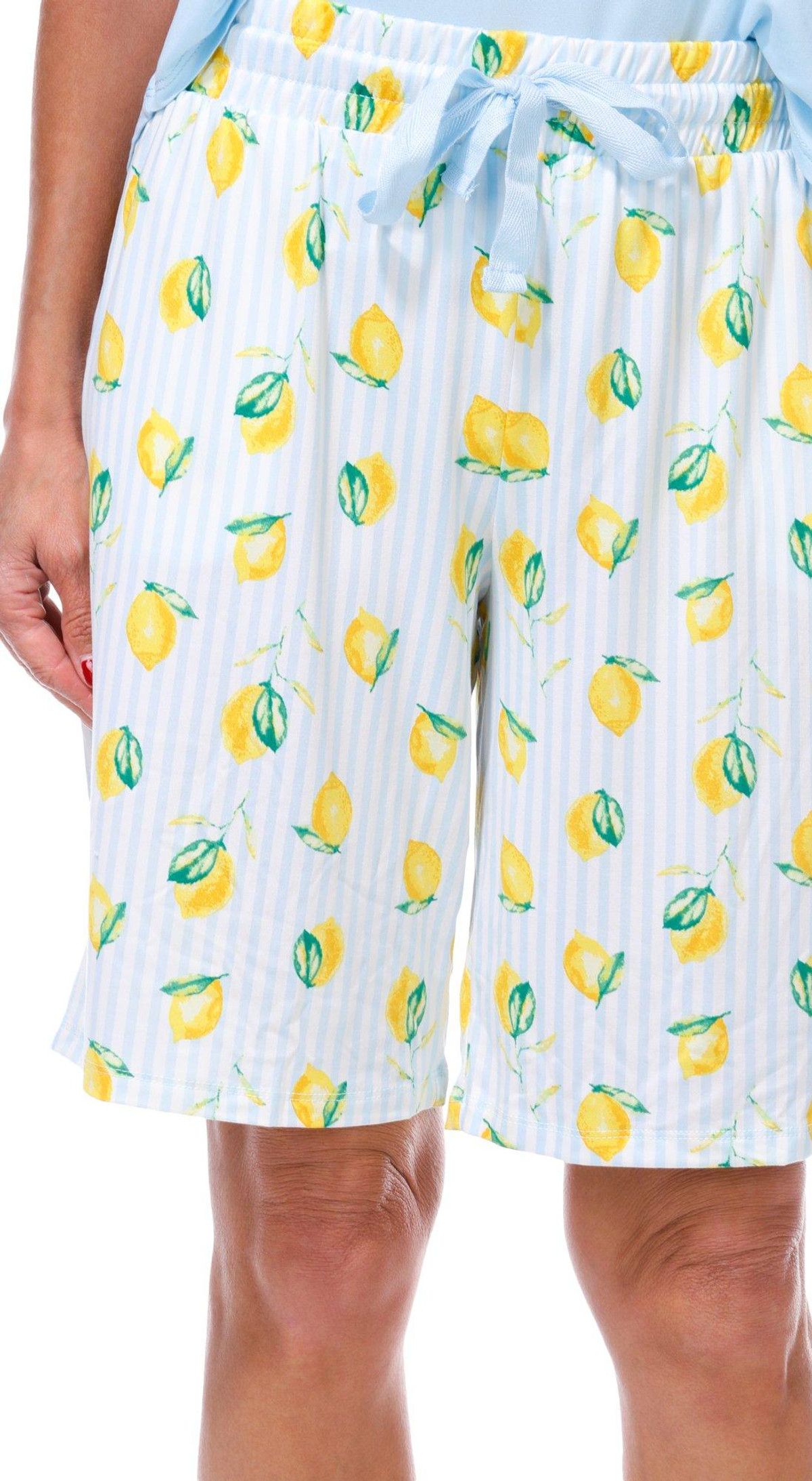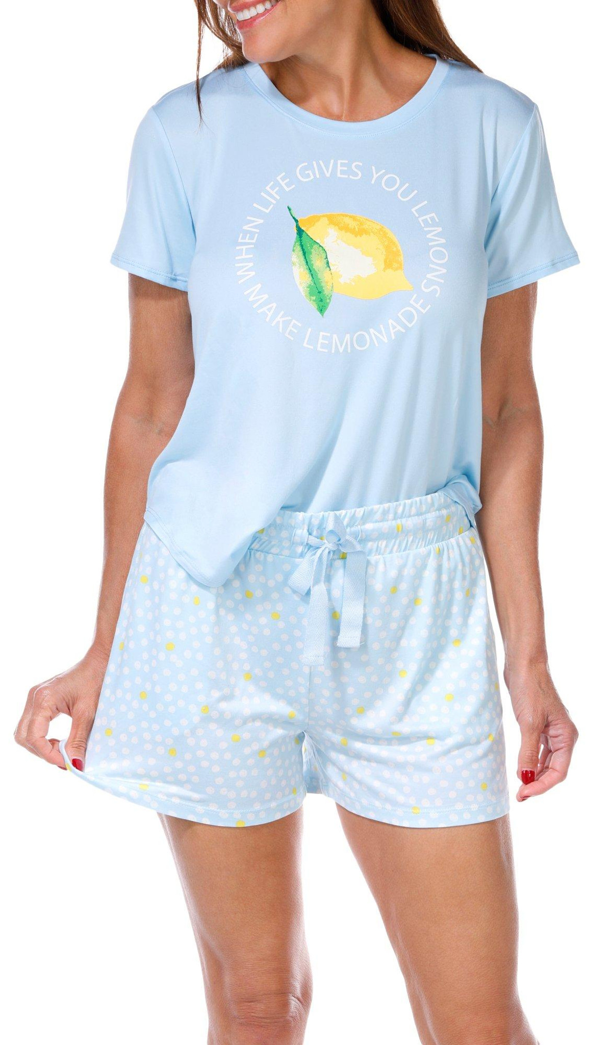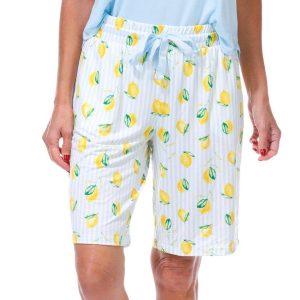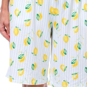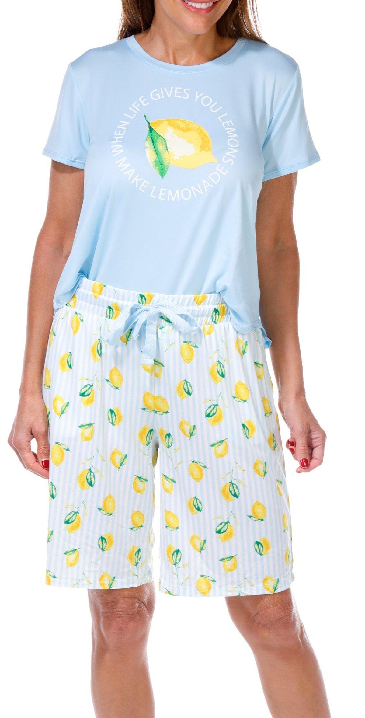 Brighten your bedtime with our Women’s 3 Pc Lemon Print Sleepwear Set. Featuring a fun graphic top and two pairs of coordinating shorts, this cheerful set offers playful style and comfy versatility. Fabrication is 95% polyester, 5% spandex