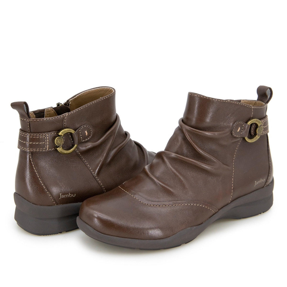 An understated ankle boot with a big personality, the Angie is ready to become a regular in your rotation. Crafted from leather, the unique design features graceful folds that add visual interest to this minimalist beauty, while slight texture and a brass side buckle add a hint of distressed ruggedness to the style. A contoured footbed cushions every step, while a high-grip outsole gives this waterproof ankle boot superior traction, no matter the terrain.