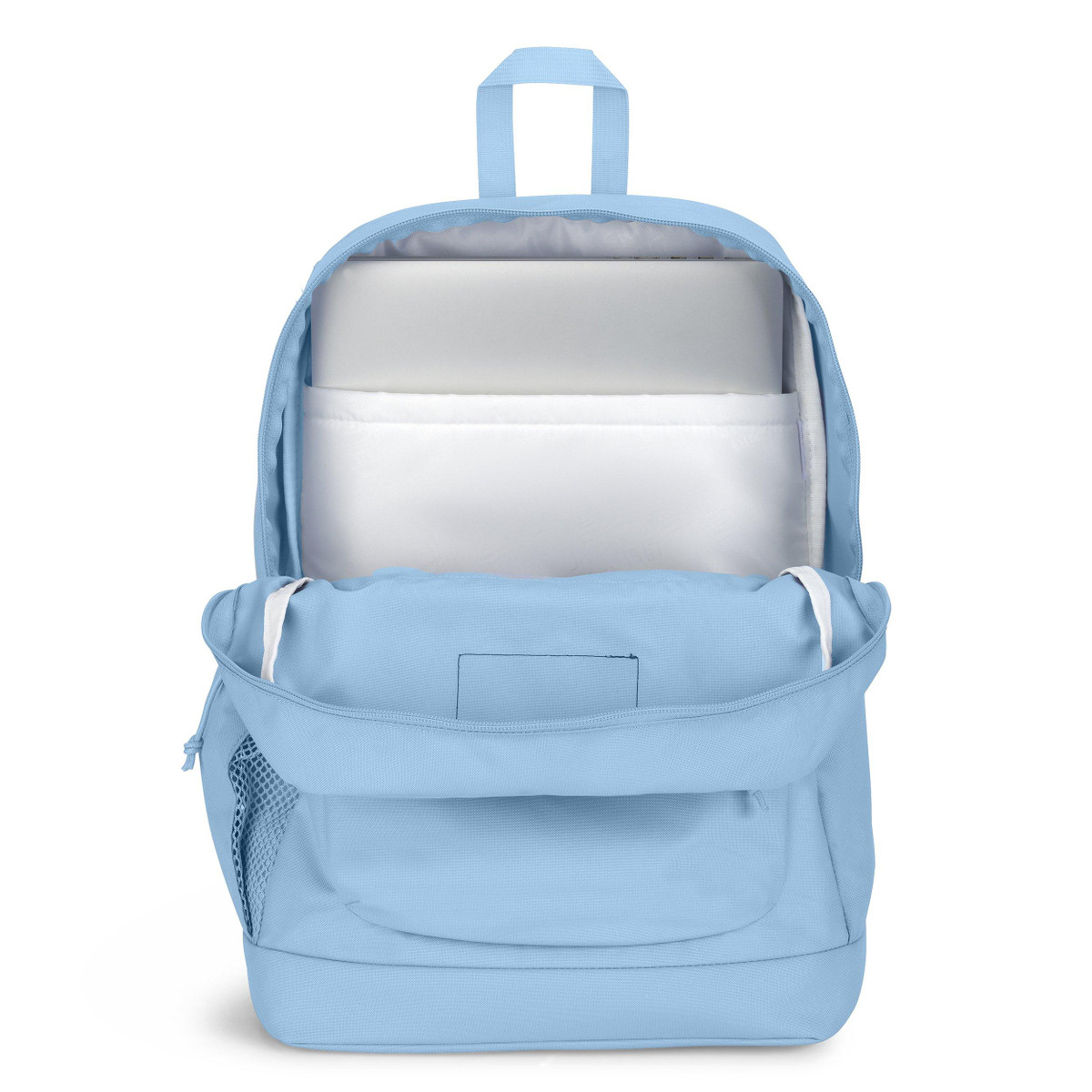 Your kiddo will look too cool for school in the Cross Town Plus backpack. This roomy bookbag features a slide slip pocket for easy access, a protective laptop sleeve, Interior Pockets: 2 slip, 2 slip pencil pockets, Exterior Pockets: 2 zip, 1 slip and adjustable shoulder straps Solid Color. Backpack measures 12.5 in. L x 6.5 in. W x 17in. H.