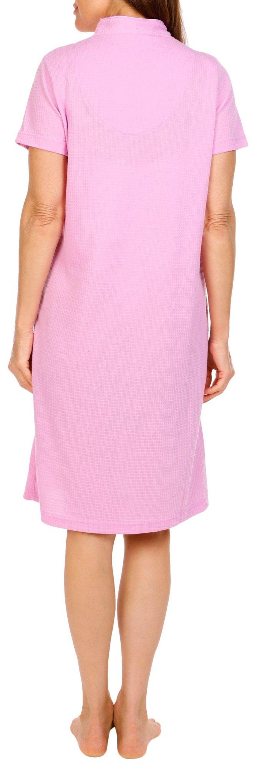 Experience ultimate comfort and style with our Women’s 42-inch Zip Up Short Sleeve Robe. Crafted from 100% polyester, this robe features a luxurious waffle knit fabrication that feels soft against your skin. The full zippered closure ensures easy wear, while the embroidered floral design on the collar adds a touch of elegance.