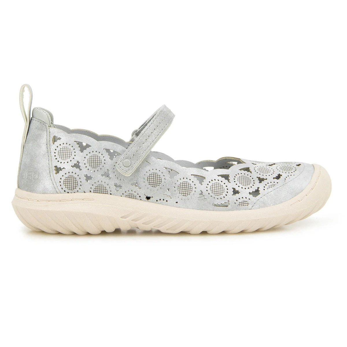 The Anna is far from your average Mary Jane. A playful style, the body is made up of circular panels of shimmering faux leather, with breathable perforations between the shapes. A thick, flexible outsole designed with All Terra traction keeps you steady, no matter the terrain, while soft memory foam insoles and an adjustable hook-and-loop closure ensure total comfort.