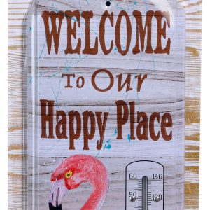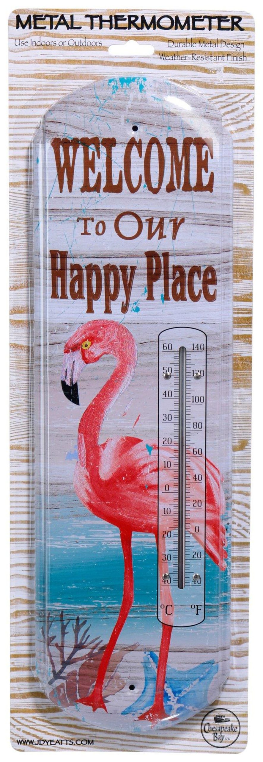 Introducing the Outdoor Flamingo Thermometer, featuring a durable metal design and weather-resistant finish. Perfect for adding a touch of coastal charm to your outdoor space while reliably measuring the temperature. Ideal for Flamingo lovers and garden enthusiasts! Measures 17.5” x 5.25”.
