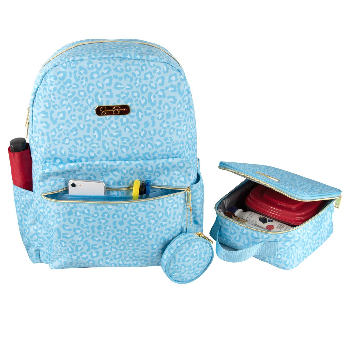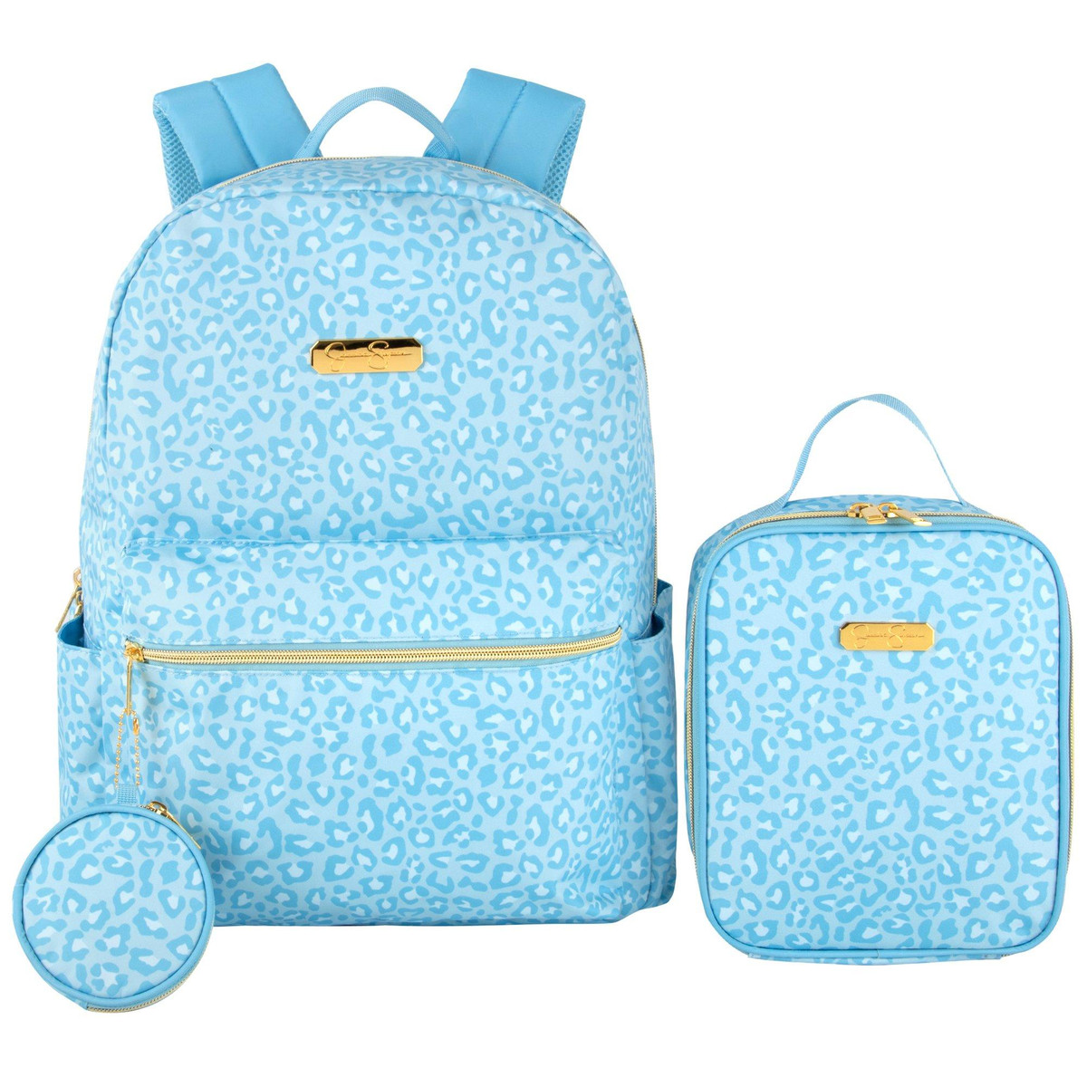 Get ready for the school year with this all-in-one backpack set! Featuring a spacious main backpack, a matching mini backpack purse, and a keychain coin pouch. With 3 roomy pockets, a padded laptop sleeve, and a top handle for easy carrying, it is designed for both function and style. Backpack measures 17 in. x 12.5 in. x 6 in. Mini Luch tote measures: 10 in.L x 8 in.W x 3 in.H