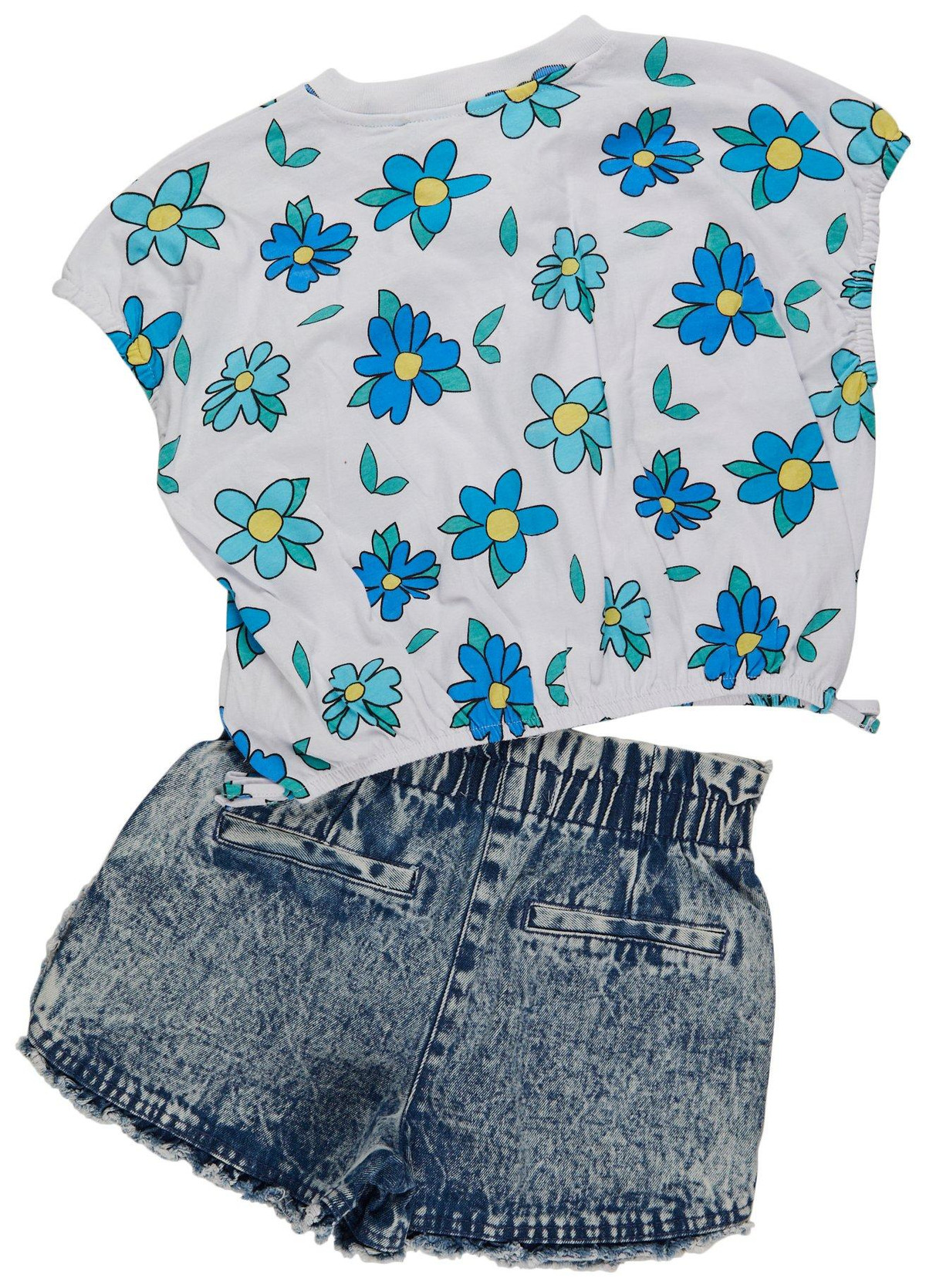 Introducing the Big Girls 2 Pc Denim Shorts Set, a perfect blend of style and comfort. This set features a charming short sleeve floral top paired with high-waisted pull-on denim shorts. Ideal for casual outings or playdates, this outfit offers a trendy and coordinated look. Made for both fashion and ease, it’s a must-have addition to any young girl’s wardrobe.