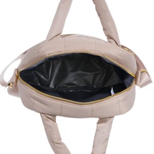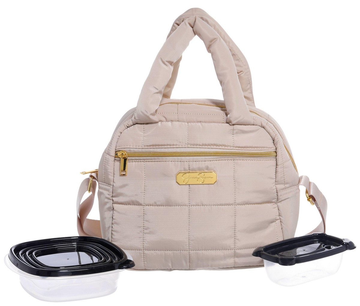 Carry your meals in style with this chic Solid Quilted Lunch Tote Bag. Featuring two top handles, an adjustable shoulder strap and a main zip compartment that includes two matching plastic storage containers, keeping your food organized and fresh. The quilted nylon design adds a touch of chic elegance. Perfect for work, school, or on-the-go! Measures approximately 10.5 in x 4 in x 10 in.