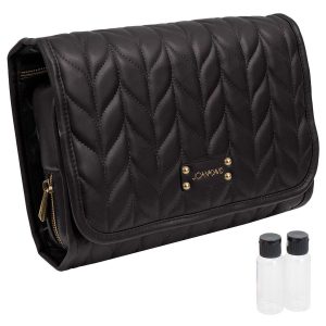 Introducing hanging travel organizer cosmetic bag, a stylish and practical accessory for your beauty essentials. This eye-catching bag features quilted pattern comes with two travel-sized toiletry bottles, perfect for your favorite products on the go. Compact yet spacious, this cosmetic bag is ideal for organizing your makeup and toiletries, making it a must-have for any beauty enthusiast!