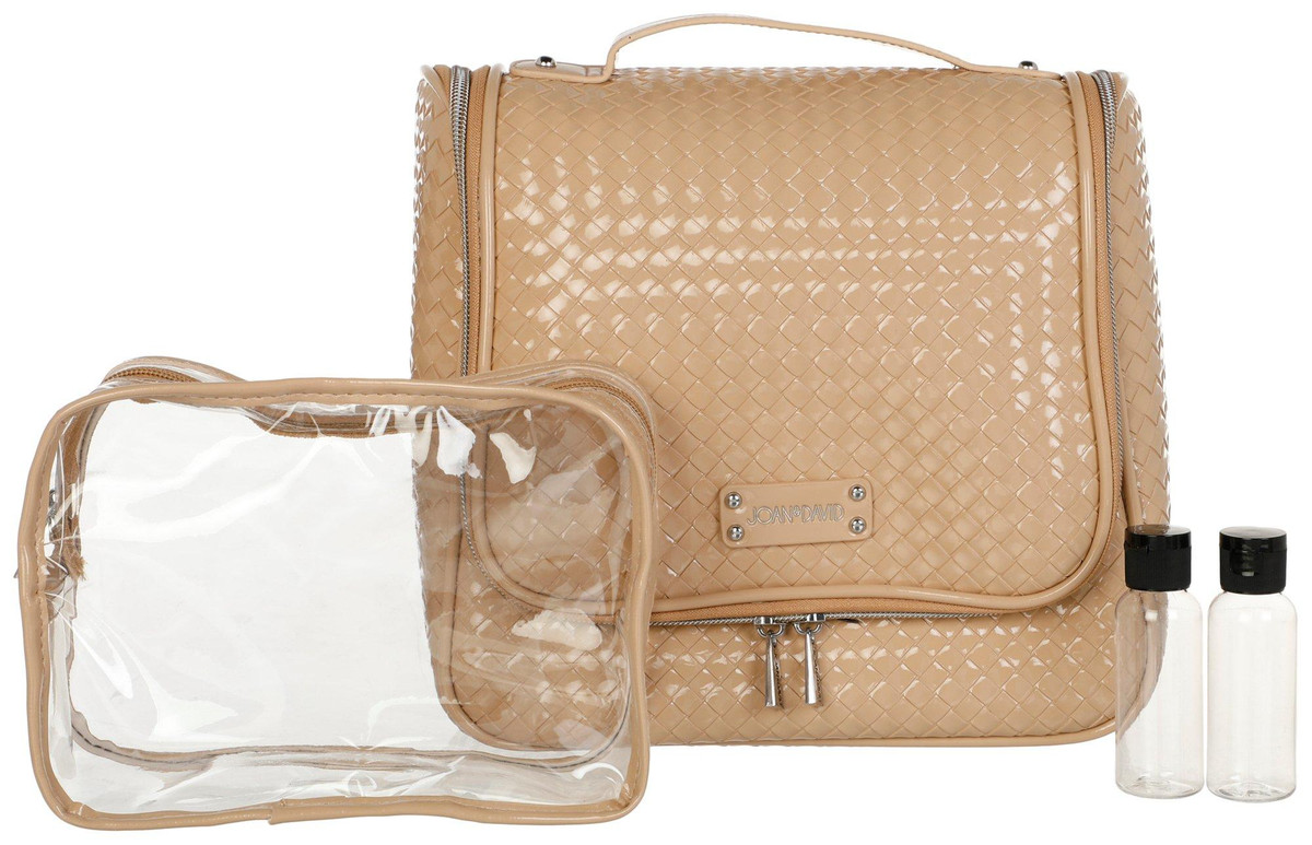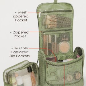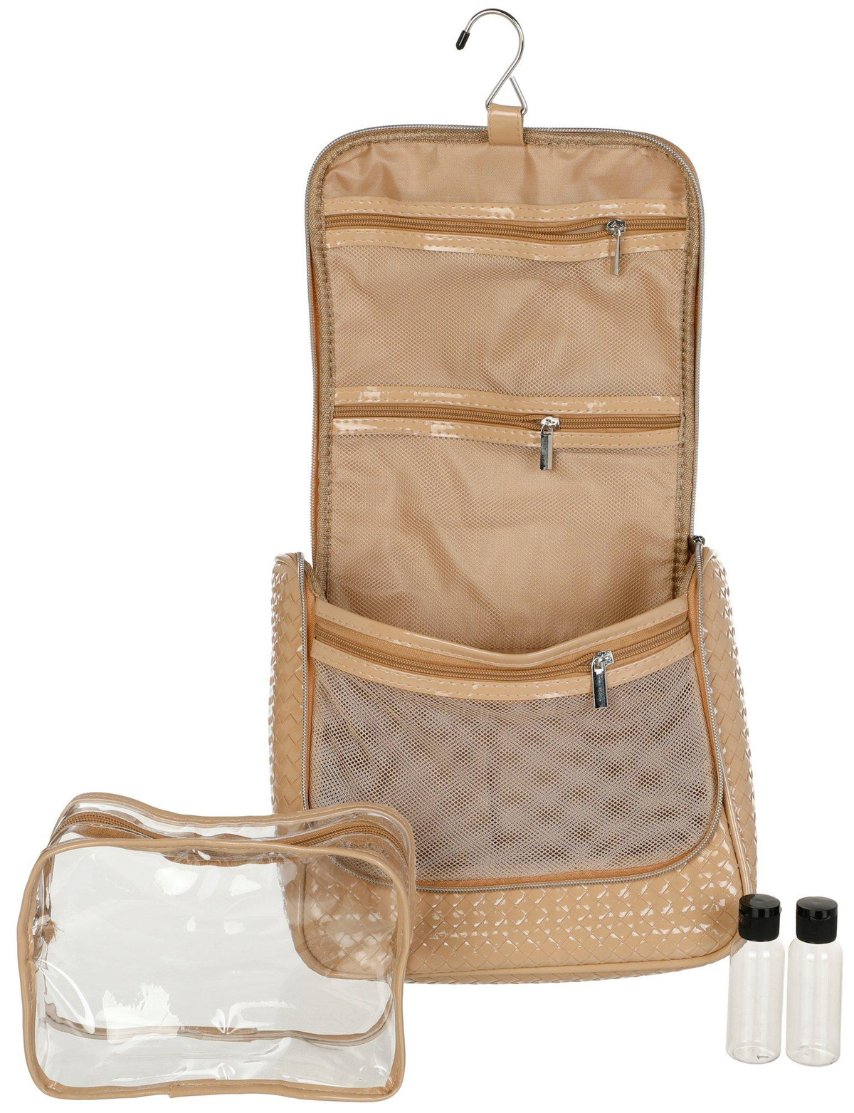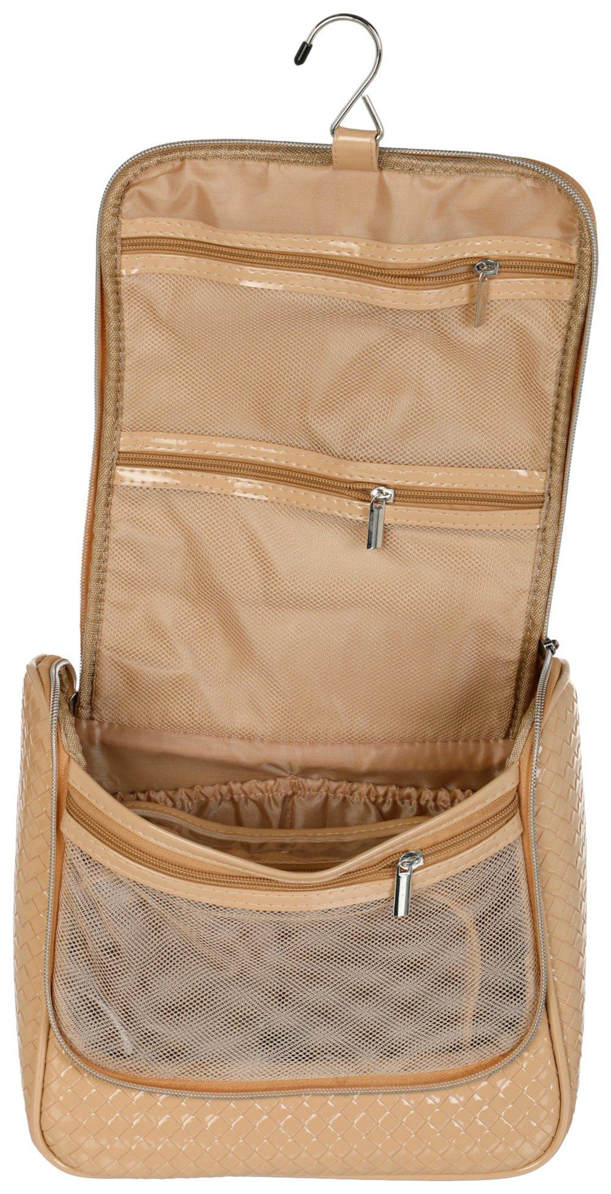 Introducing our Top Handle Cosmetic Case, the perfect blend of style and functionality. This chic case features a solid quilted exterior that exudes elegance. With multiple zippered and slip pockets, it offers ample storage for all your beauty essentials. The convenient hanger allows for easy access and organization. Measuring 10 inches by 5 inches by 10 inches, it’s compact yet spacious enough for your needs. Elevate your travel experience with this must-have accessory!