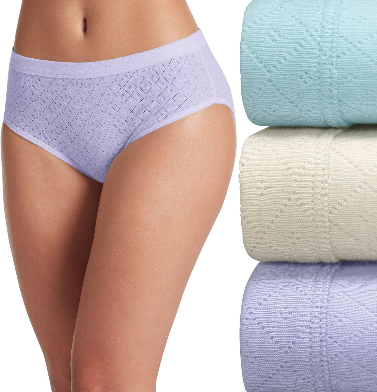 Made of soft 100% cotton with a feminine, open knit pattern for added breathability. The full coverage design stays in place.