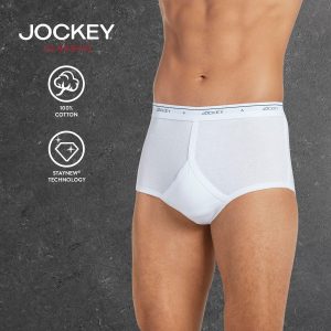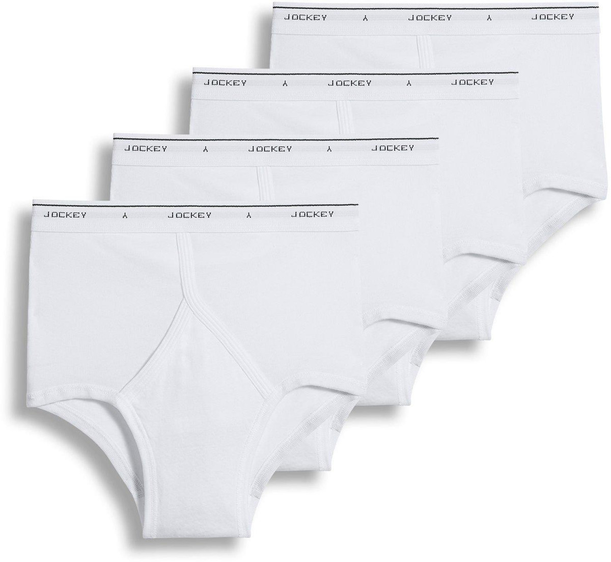 Classic fit briefs feature durable cotton and an exclusive Y-front design. Briefs provide full coverage and sit at natural waist. Pack contains 4 briefs that feature StayNew Technology that keeps the look and feel like new, wash after wash.