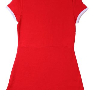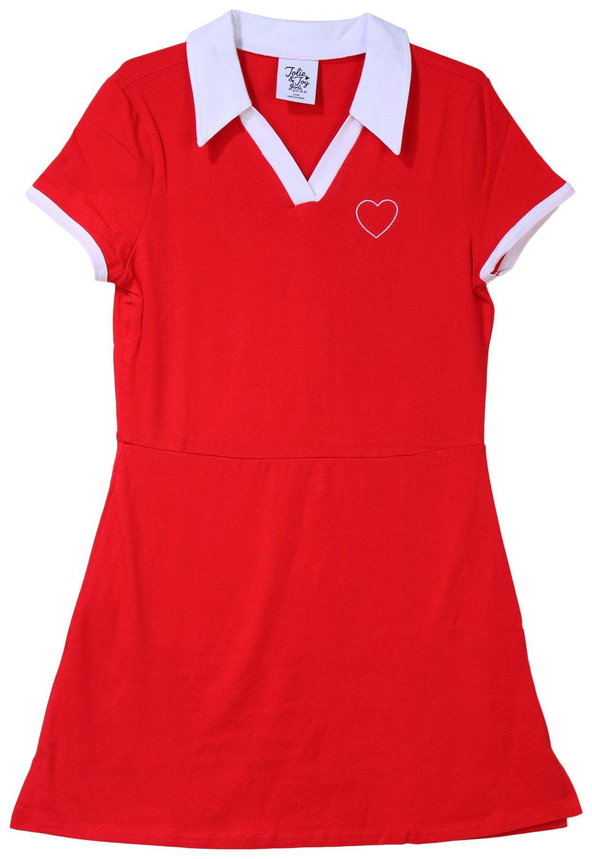Sporty meets sweet! This embroidered tennis dress features short sleeves, a classic Johnny collar, and a charming heart detail on the chest. Designed for comfort and style, it is perfect for active days or casual outings with a polished, playful look.