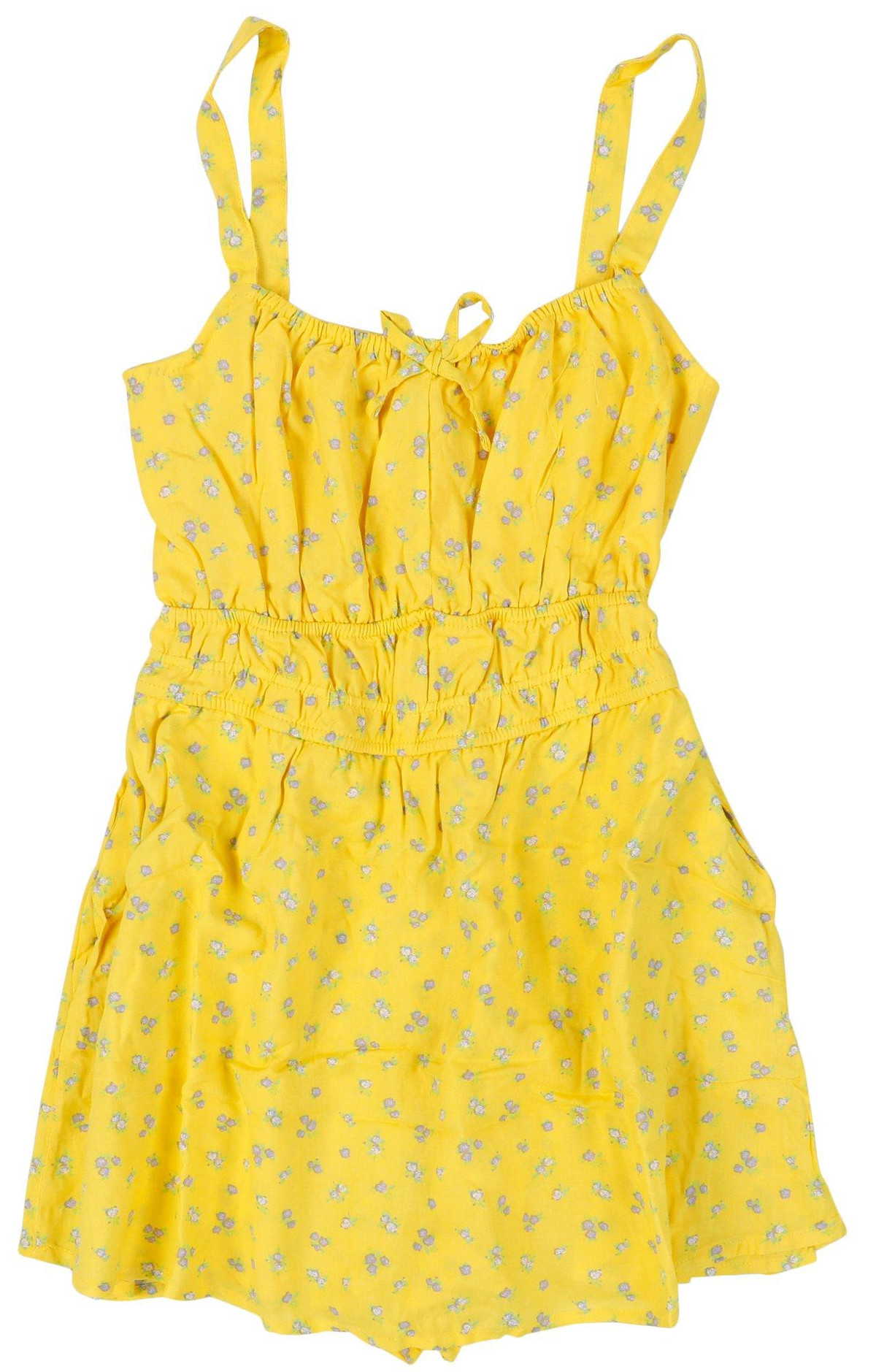 Let your little one shine in this beautifully designed Big Girls Printed Dress with Skort. Crafted with comfort in mind, this charming dress features a smocked back for a flexible fit and all-day wearability. The soft, floral-printed fabric, and bow detail, adds a touch of elegance, while the full built-in skort provides extra coverage and freedom to play. Fabrication is Shell: 100% rayon, Lining: 100% polyester. Dress length measures approximately 28 in.
