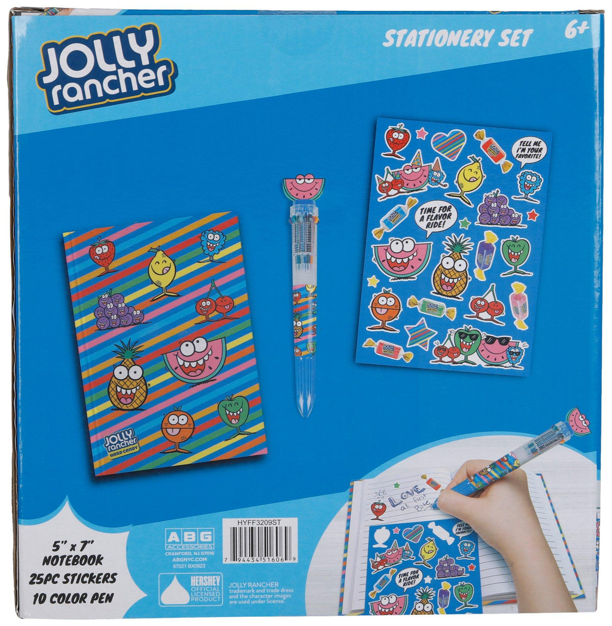 Add a burst of flavor to your notes with the Jolly Rancher Licensed Stationery Set, featuring a 5×7 notebook, 25 vibrant stickers and a 10-color pen. Perfect for writing, journaling or creative projects, this colorful set brings candy-inspired fun to school, work or home. A sweet pick for Jolly Rancher fans and stationery lovers alike. For ages 6+.
