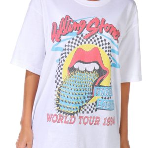 Juniors Rolling Stones Graphic Tee delivers iconic rock style with a classic crew neckline and short sleeves. The bold logo graphic on the front adds a timeless edge to any casual outfit. A must have for fans of legendary music and effortless fashion. Fabrication 100% cotton