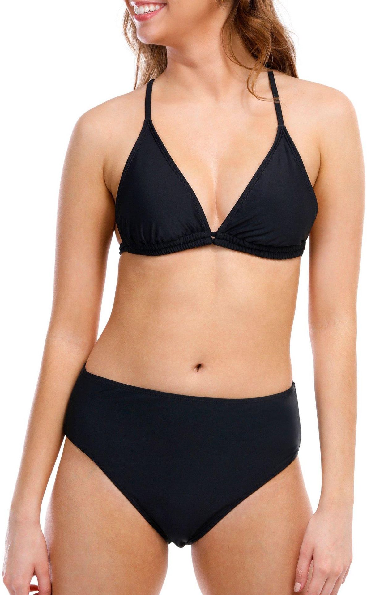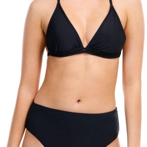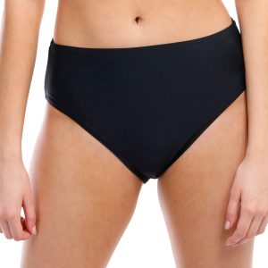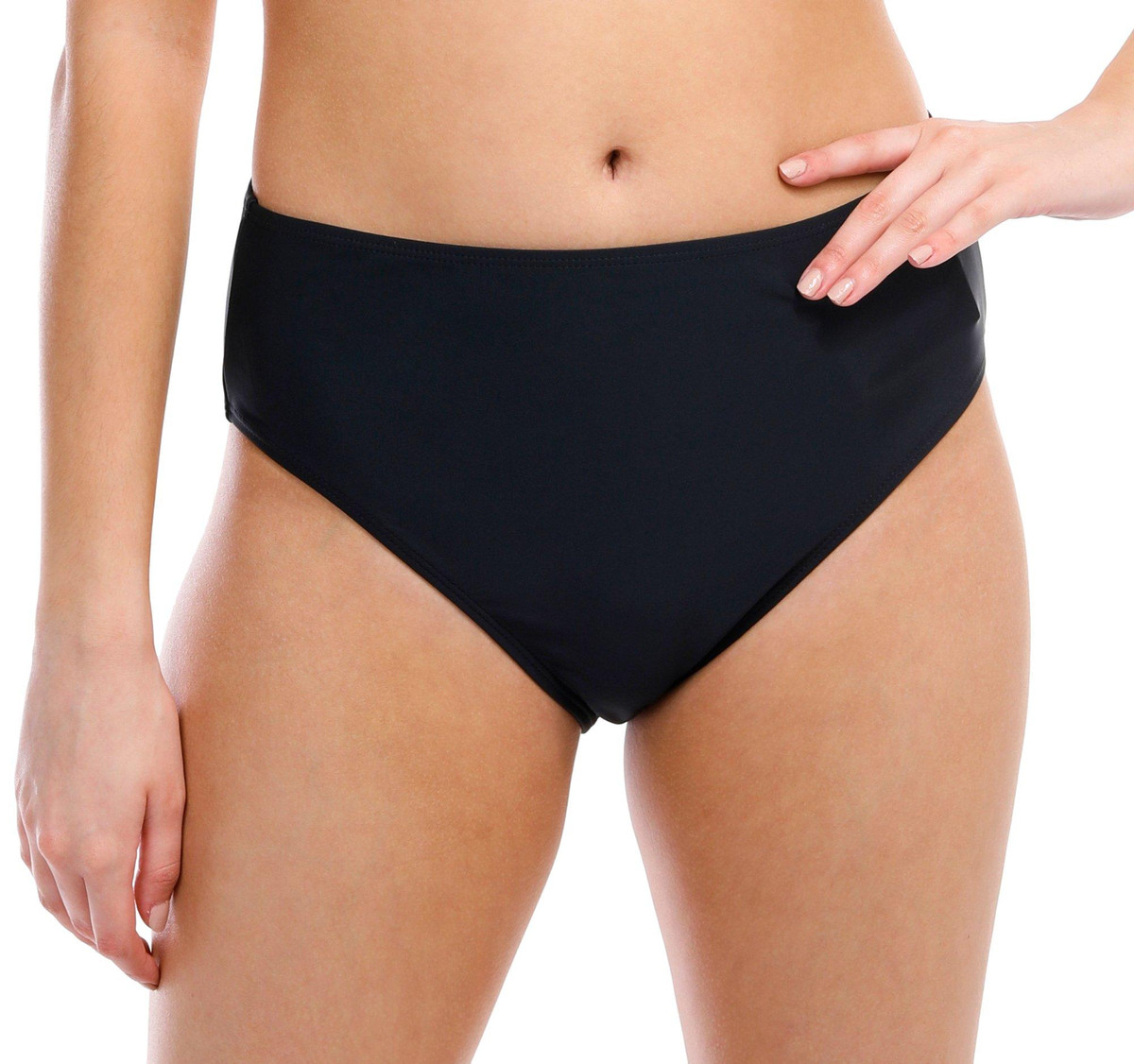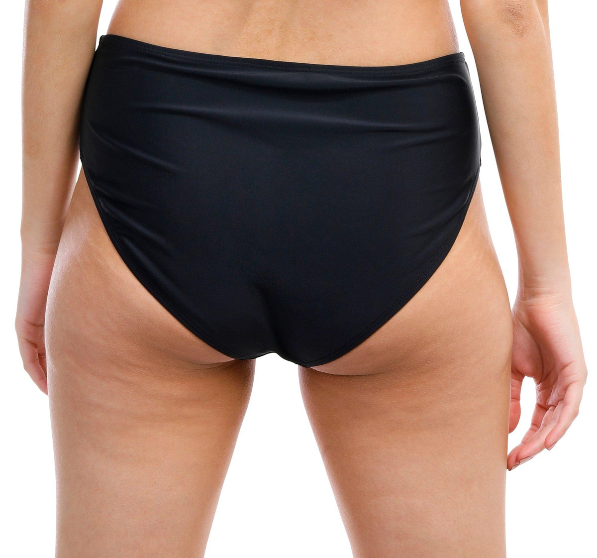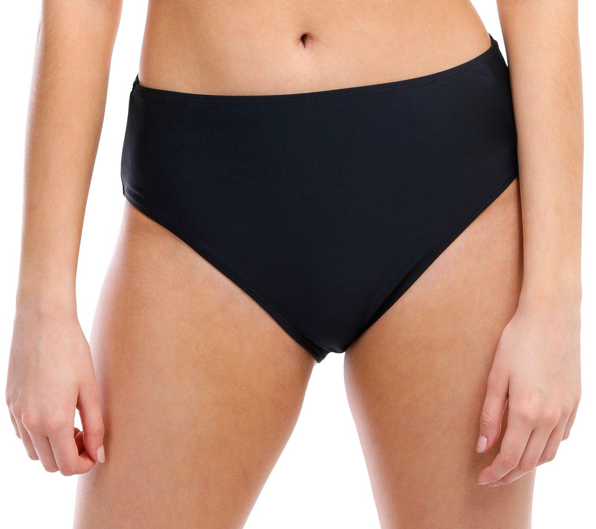 This lined swim bottom features a solid color design, a high waistband, and medium coverage. Fabrication 82% nylon, 18% spandex.