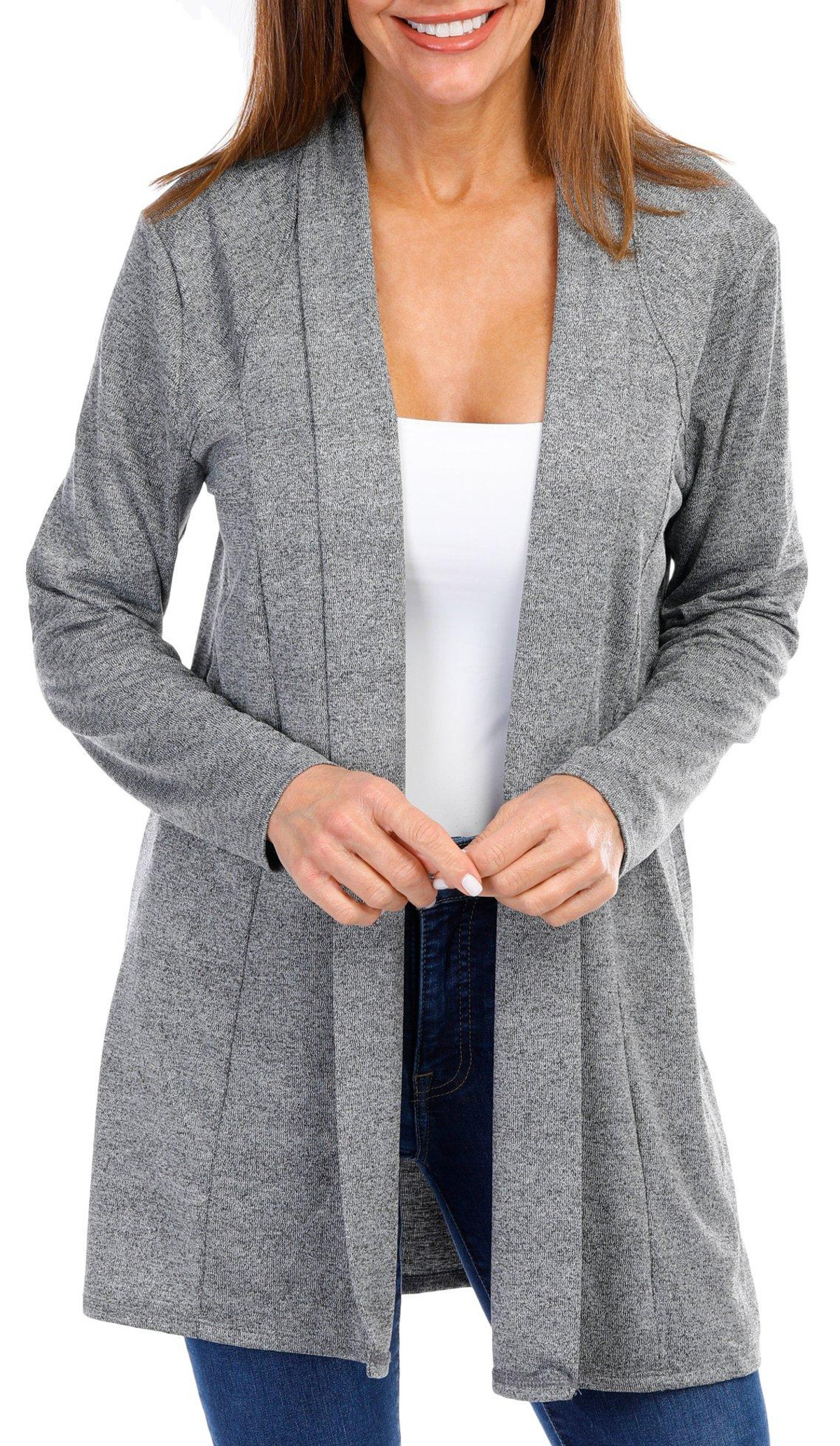 Introducing the Open Brushed Hacci Cardigan, a perfect blend of comfort and style. Crafted from a lightweight fabric blend, this cardigan offers a soft, brushed texture that feels luxurious against the skin. Its open front design adds a touch of elegance, making it easy to layer over any outfit. This versatile piece is a must-have for any wardrobe, providing both warmth and a fashionable look. Fabrication is 95% polyester and 5% spandex.