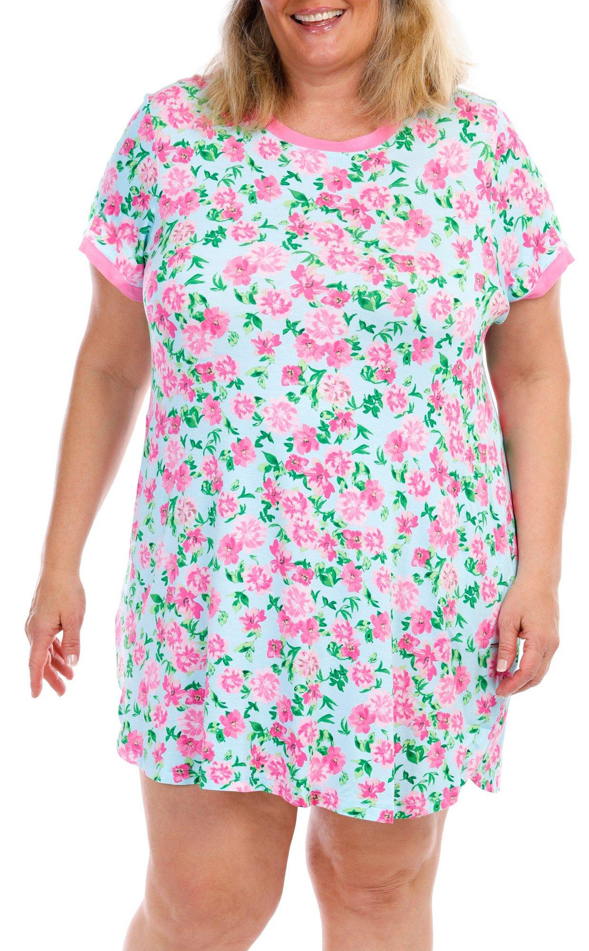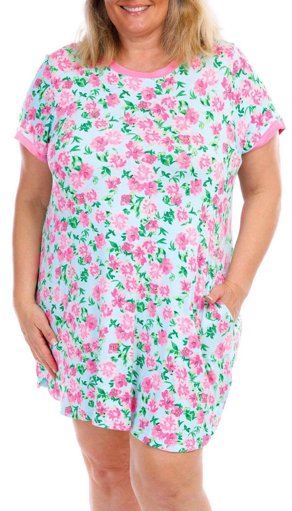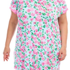 Drift into a peaceful slumber with this Short Sleeve Sleepshirt. Made from soft, luxurious fabric, this sleepshirt ensures ultimate comfort throughout the night. The charming floral print adds a touch of elegance and femininity to your sleepwear collection. Perfect for warm nights or lounging at home, this sleepshirt combines style and comfort effortlessly. Length measures approximately 32 in. Fabrication is 95% Rayon, 5% Spandex.