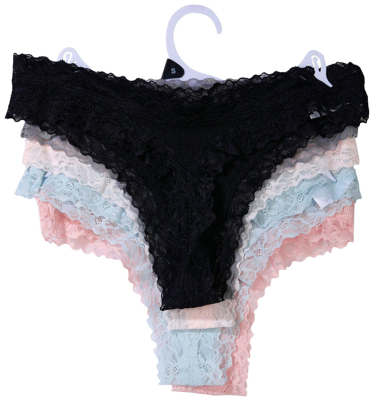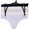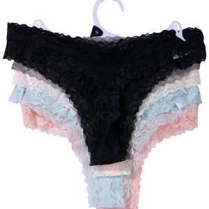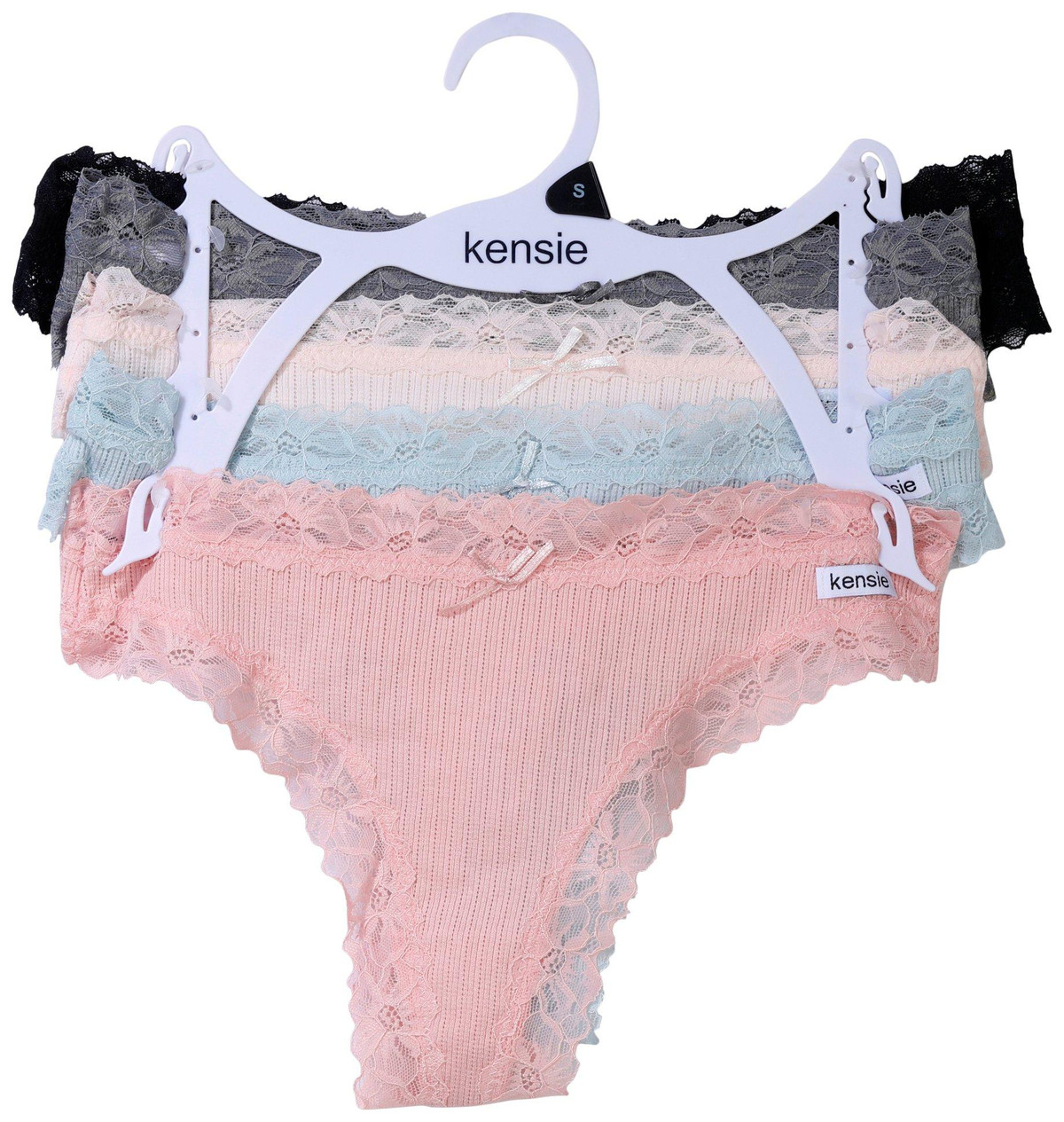 This 5 pack of thong underwear from Kensie brings comfort and style to your everyday essentials. Made with soft, stretchy ribbed fabric and delicate lace trim, each pair offers a flattering fit and breathable feel. The thong cut provides minimal coverage with a smooth silhouette, while the assorted colors add a playful touch. Fabrication: 85% nylon, 15% spandexperfect for stylish women who want comfort without compromise.