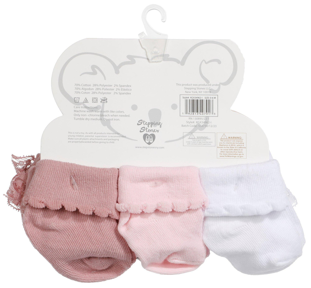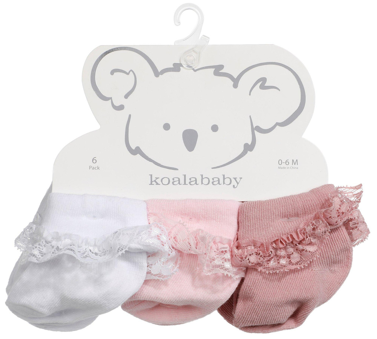 Dress your little one in the sweetest style with our Baby Girls 6-Pack Socks. Made from a cozy blend of cotton, polyester, and spandex, these socks offer both comfort and stretch. Three pairs feature adorable lace ruffle accents, adding a dash of elegance to everyday wear. Perfect for keeping tiny toes warm, these socks are as practical as they are pretty, ensuring your baby steps out in style and softness.