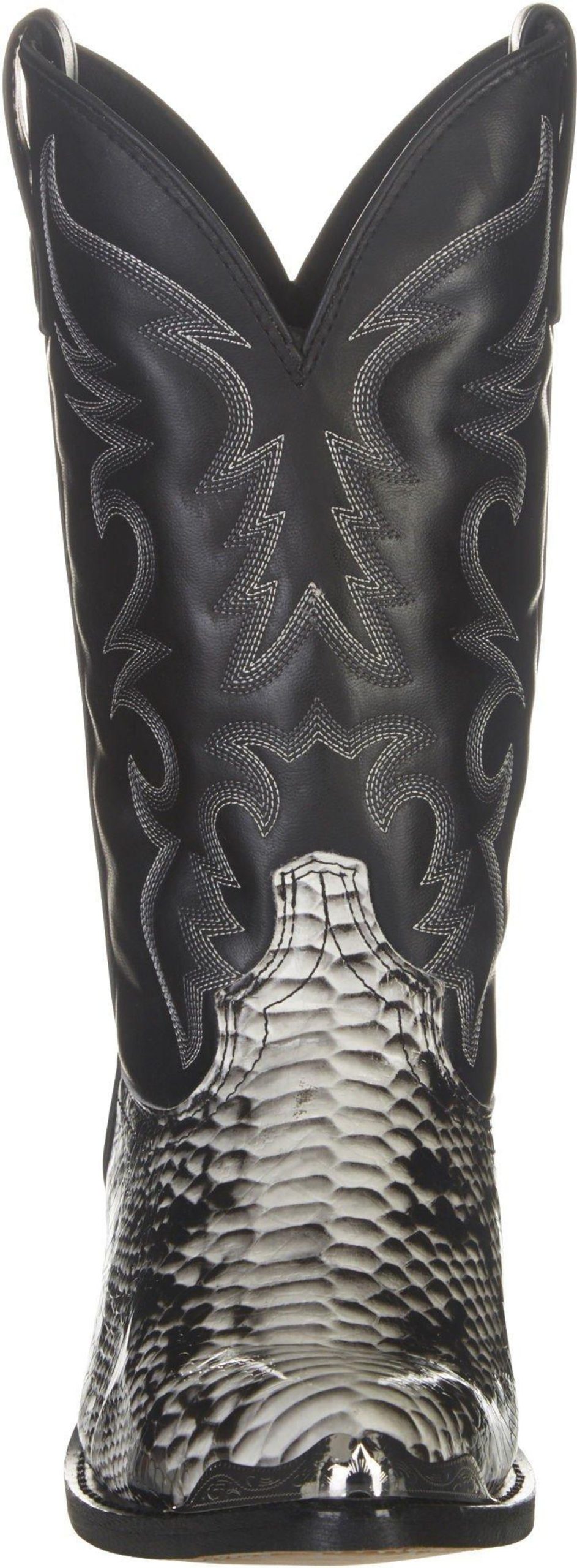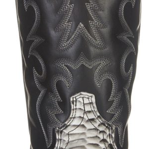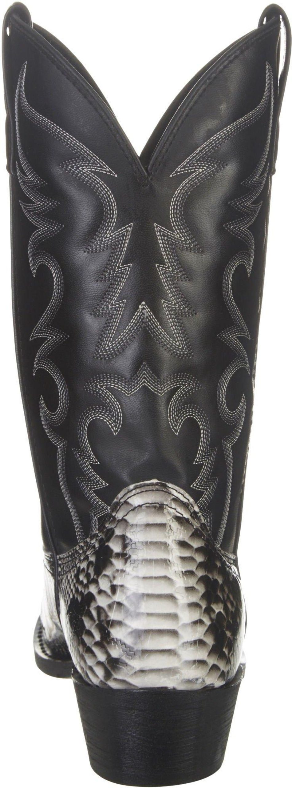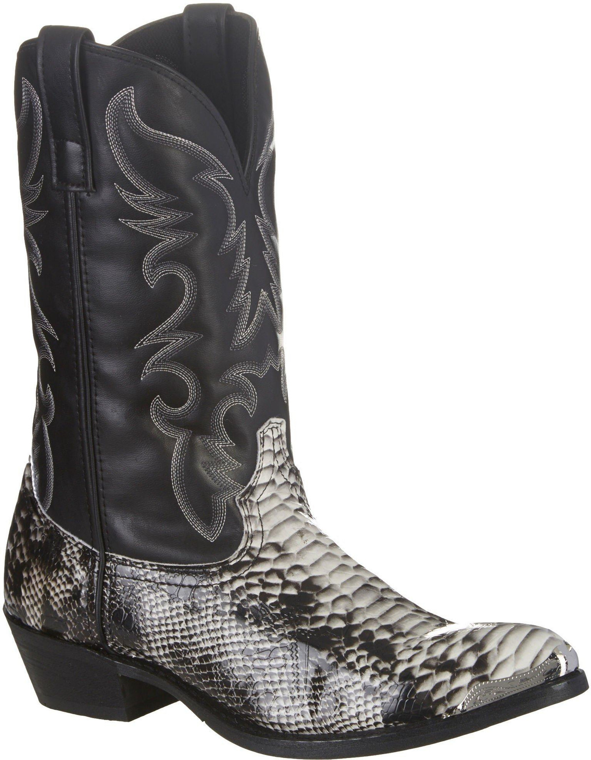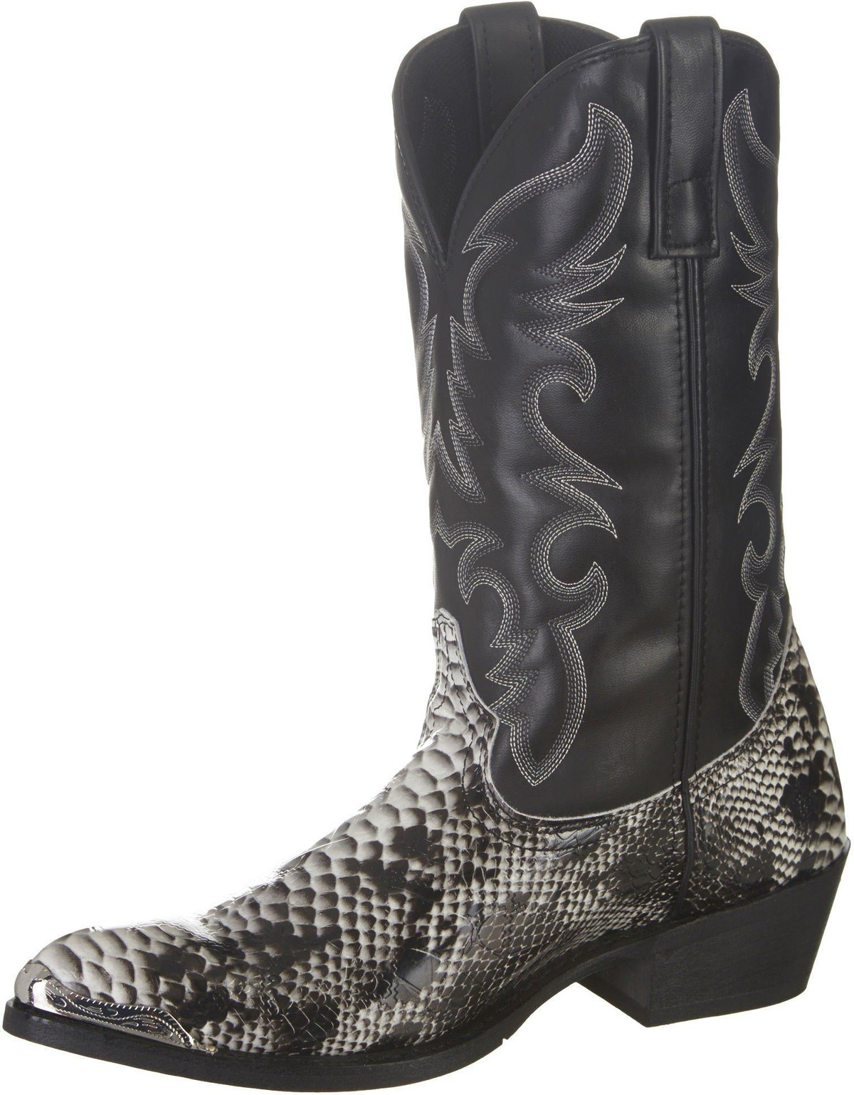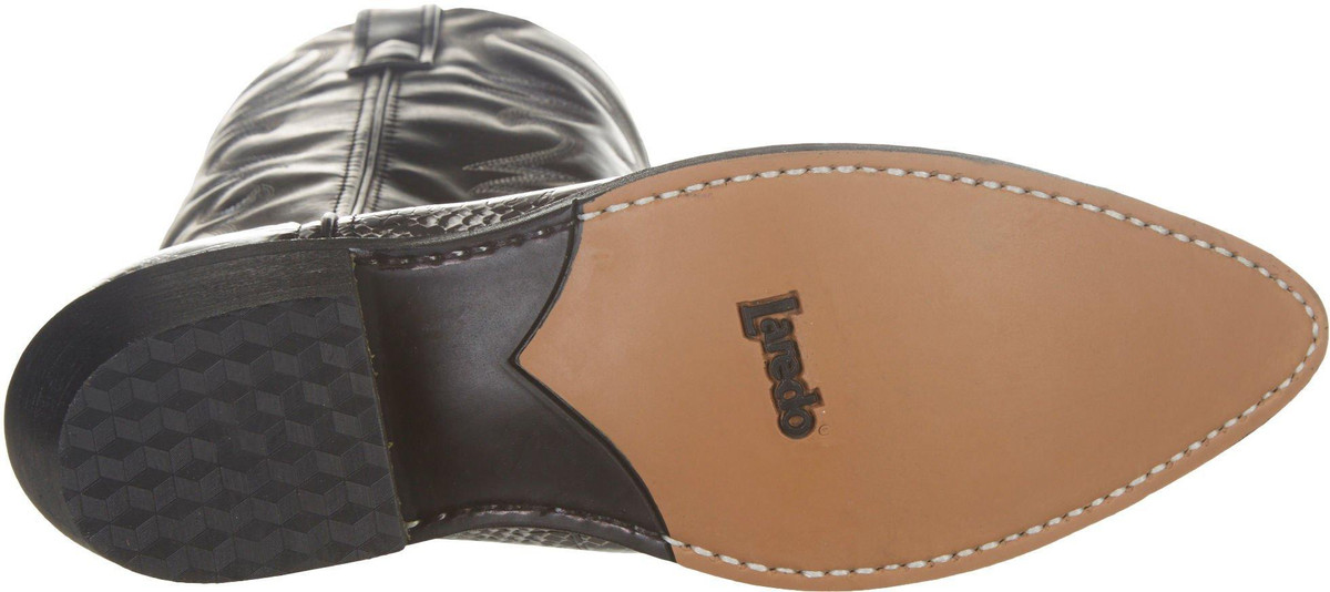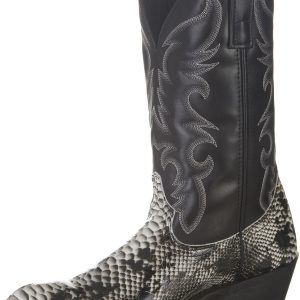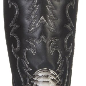 The Monty boot from Laredo is a must. Leather-like shaft complements a snake print foot and adds a sleek reptilian vibe. Shaft height is 12”.