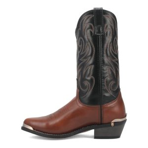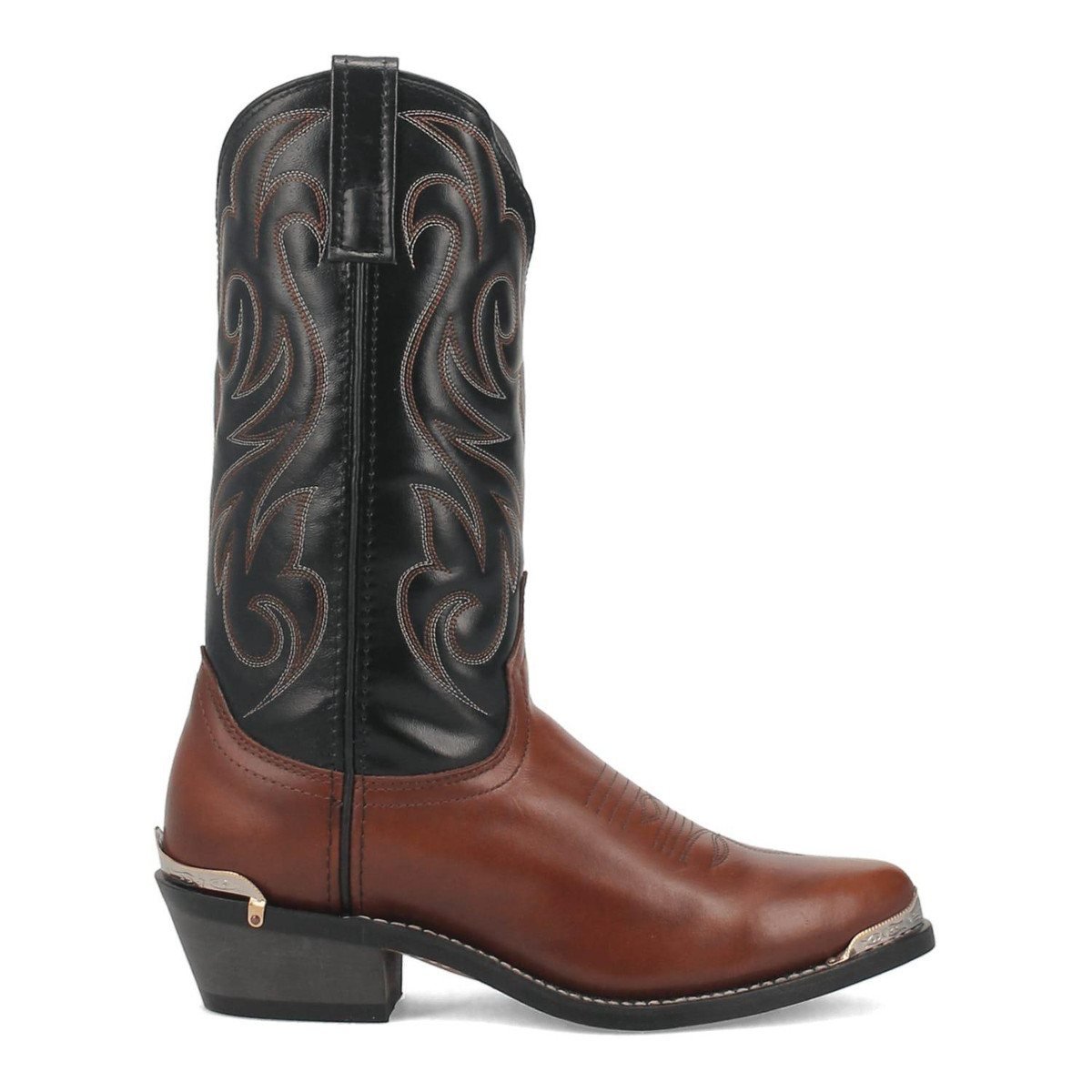 Step up your style with the Nashville boot. This two-toned looker is made with a peanut crunch leather foot. Complete with a black leather-like shaft that’s detailed in traditional western stitching and a silver toe and heel rand. Also comes with a Comfort Cushion insole.