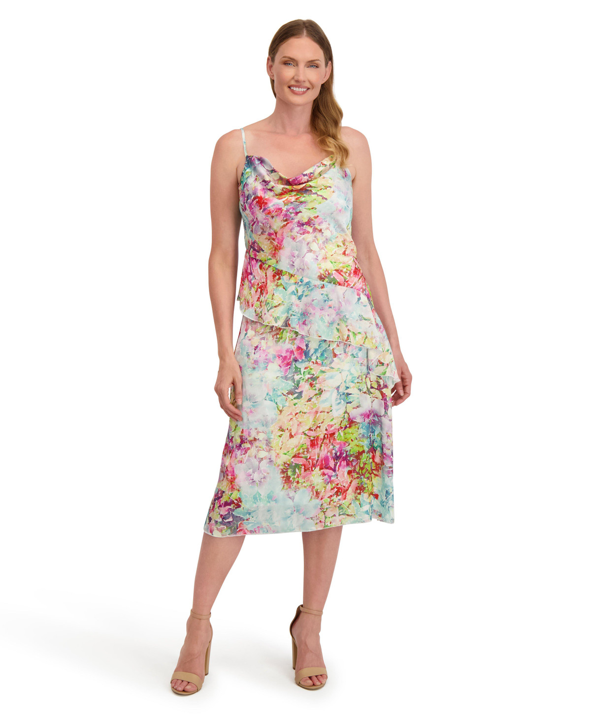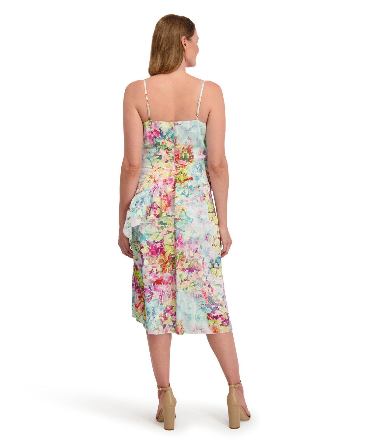 Brighten your wardrobe with this Laundry by Shelli Segal floral slip dress. Featuring a playful side ruffle and vibrant print, it is perfect for workdays, weekends, or special occasions. Dress it up with heels or keep it casual with sandals. This versatile piece offers endless summer style. Dress length 46 in.
