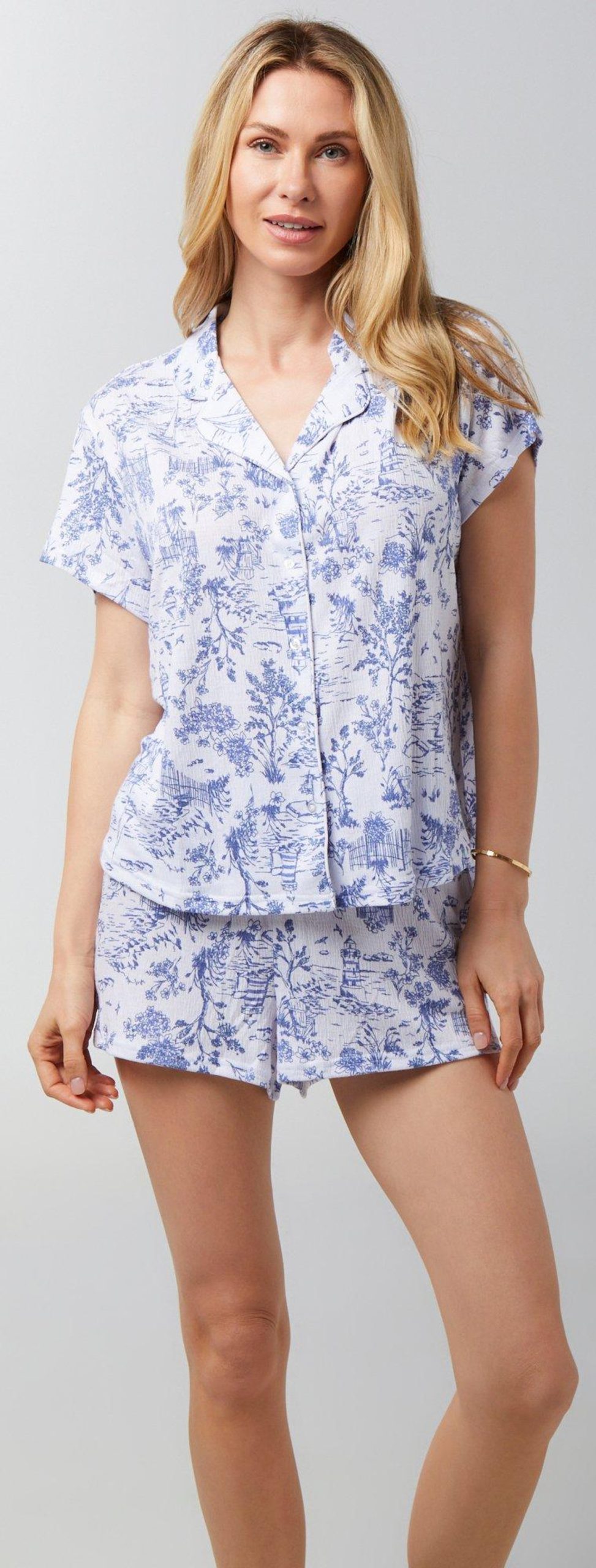 Introducing the Women’s 2 Pc Notch Collar Short Sleepwear Set, crafted from a comfortable blend of polyester and spandex. This elegant set features a vibrant design, adding a touch of charm to your nighttime routine. The short sleeve top pairs seamlessly with the matching shorts, offering both style and ease. Perfect for lounging or sleeping, this set combines beauty and comfort, making it a delightful addition to your sleepwear collection.