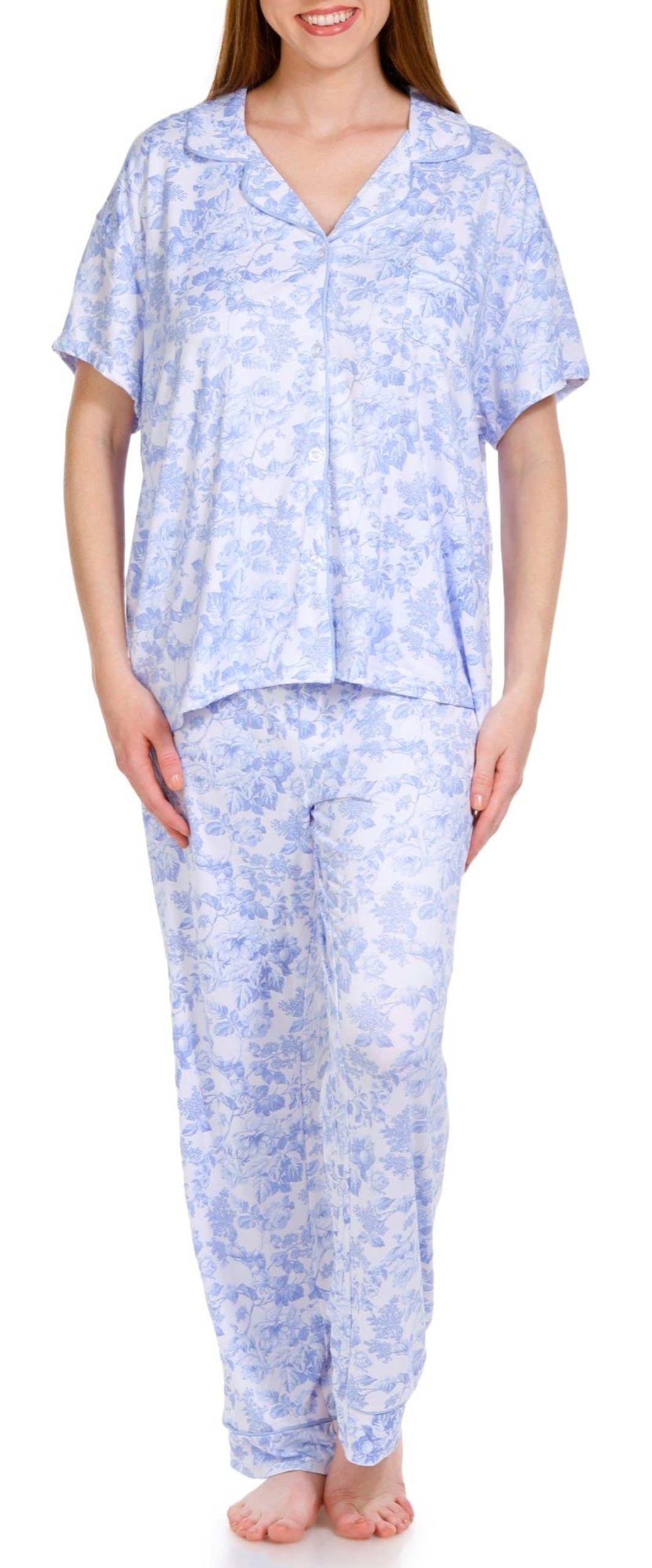 This 2-Piece Sleepwear Set is a perfect blend of comfort and style. This set includes a buttoned short sleeve shirt and matching pants, both featuring a charming print pattern. Ideal for a restful night’s sleep or lounging at home, this sleepwear set offers a relaxed fit and a stylish design. Fabrication is 90% polyester, 10% spandex.