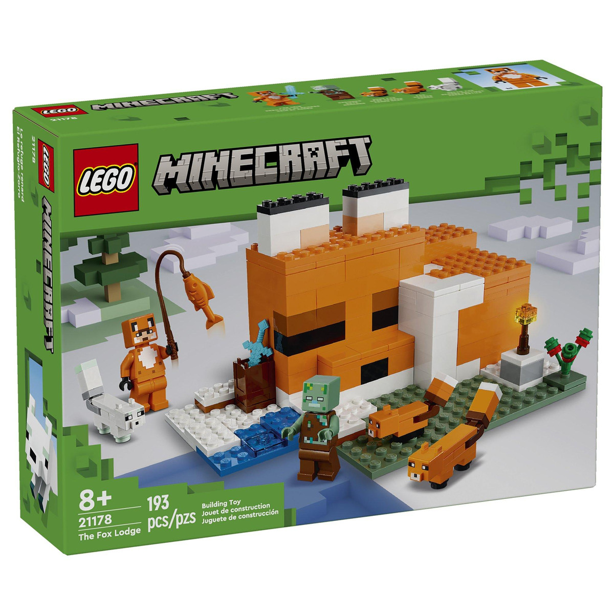 Use your Minecraft skills to build a toy house designed like a sleeping fox. The structures open back and lift-off roof make it easy for them to arrange the furniture and enjoy imaginative roleplay inside. Outside there is a baby fox, adult fox, and Arctic fox to feed with berries before the animals curl up to sleep. 193 pieces. Age: 8+