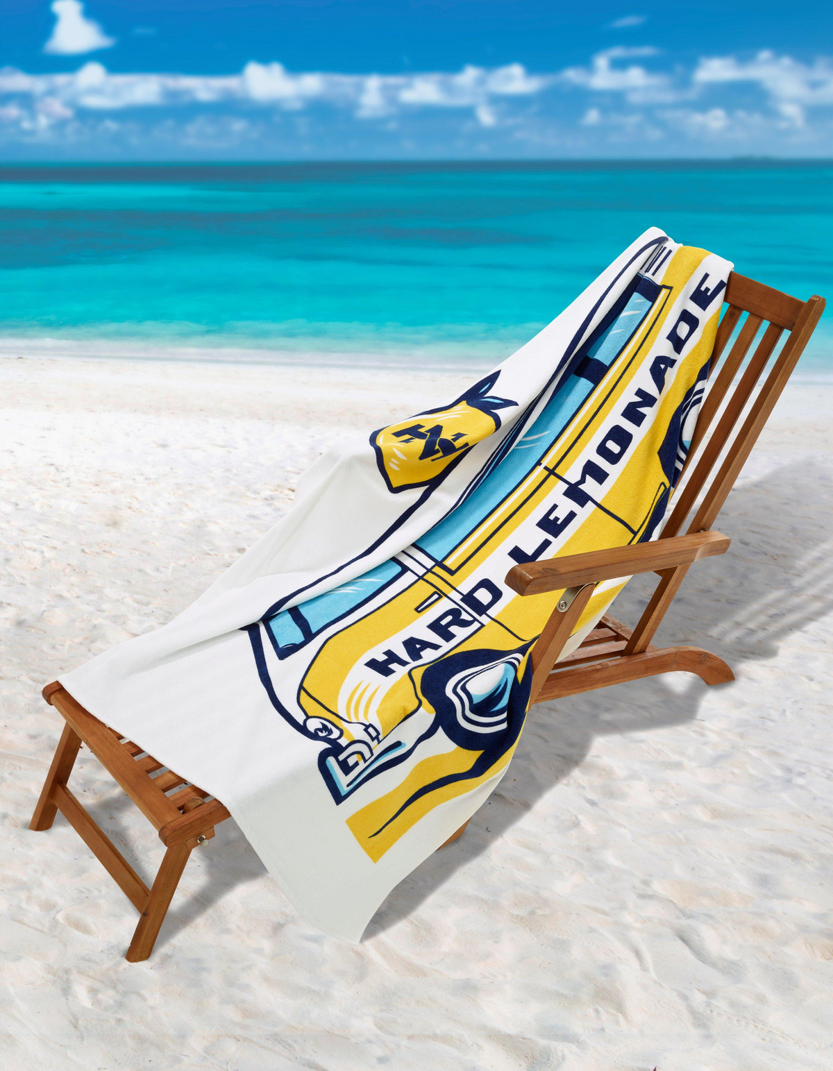 The Izod Lemonade Truck Beach Towel features a yellow vintage VW bus with HARD LEMONADE on its side and a lemon on top with the Izod IZ logo. Printed on an oversized white ground 100% cotton sheared velour face and terry back, 40 x 70. For the VW lover in all of us!!
