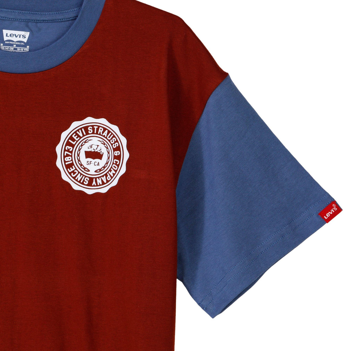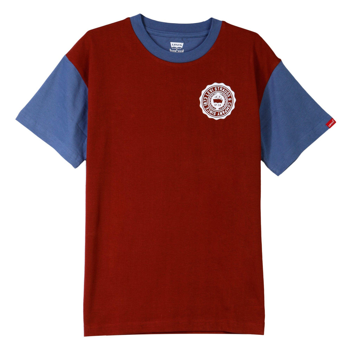Add sporty flair to his wardrobe with the Big Boys Sporty Piecing TShirt. This tee features the Levis logo prominently displayed on the front with the brand name printed across the back in bold lettering. The breathable, soft fabric ensures all-day comfort and casual style. Ideal for everyday wear, school or relaxed outings. Machine wash cold for easy care. Fabrication is 100% cotton.