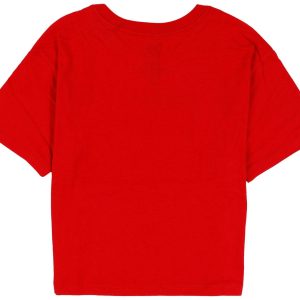 Upgrade your child’s wardrobe with the Big Girls Logo Print Crop Top. Made from a blend of cotton and polyester, this top offers a soft and comfortable feel. It features a stylish solid color, short sleeves, and a classic crew neckline. The logo script on the chest adds a trendy touch, while the cropped length provides a modern look. Perfect for casual outings or layering, this crop top combines fashion and comfort effortlessly.