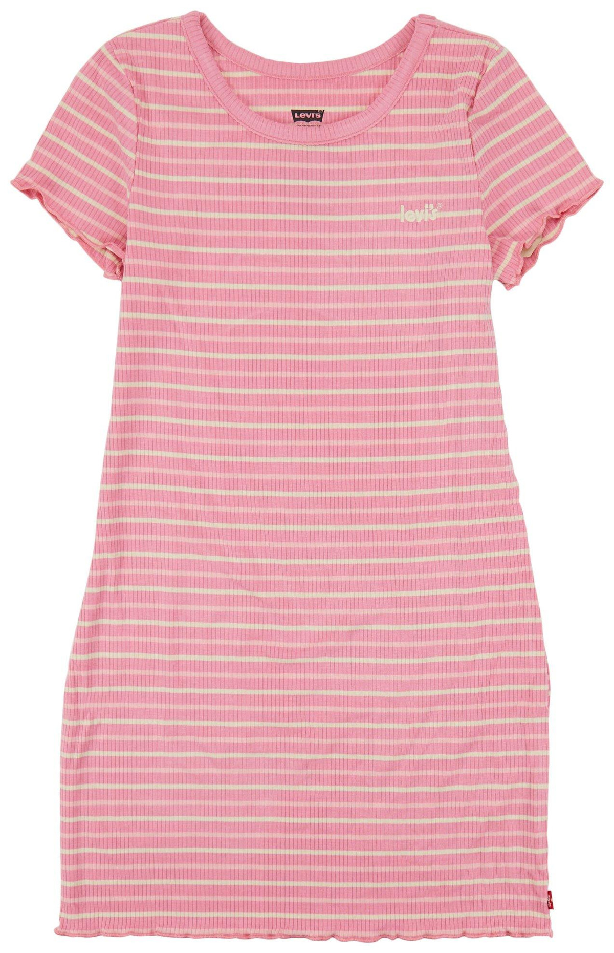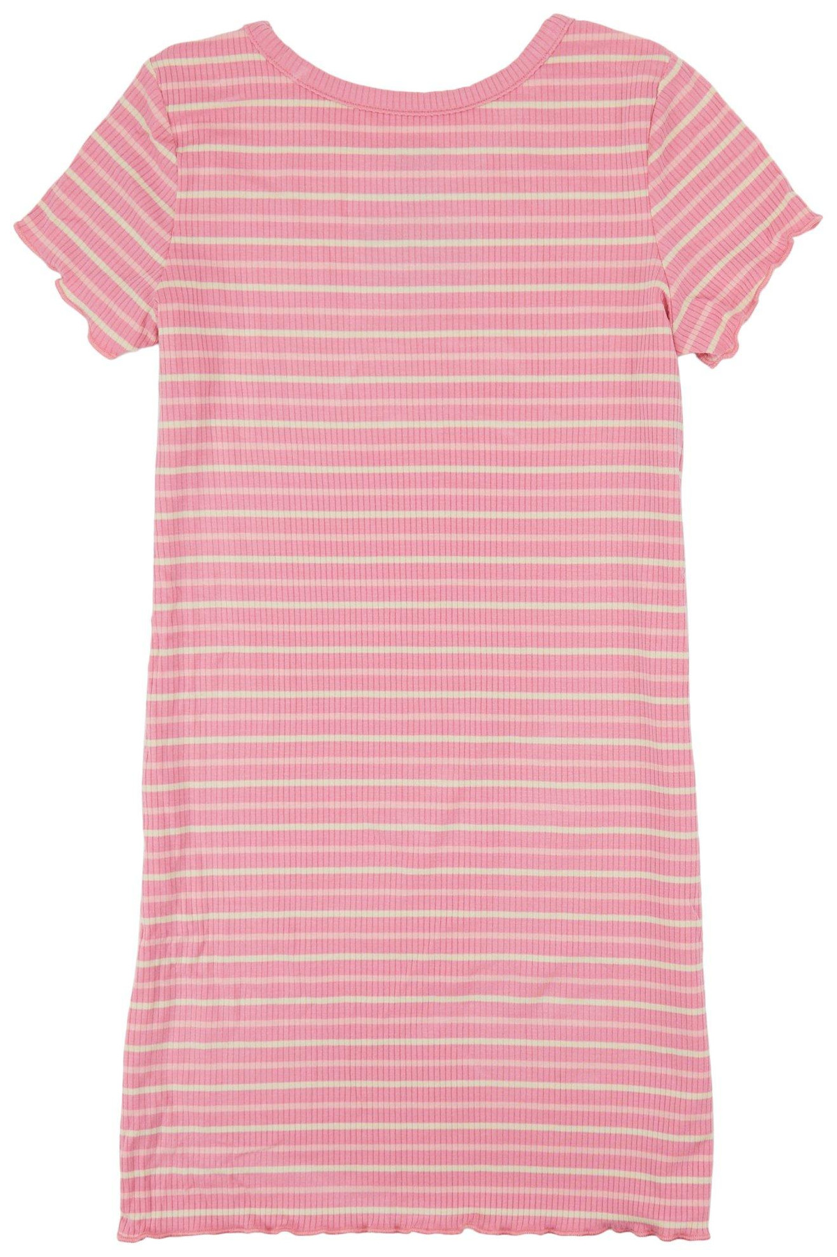 Keep it casual yet stylish with this relaxed fit T-shirt dressa must-have for every tweens wardrobe! Designed in a soft pink hue, this dress features a striped ribbed neckline and sleeve trim, adding a sporty-chic touch. Its straight, easygoing fit ensures all-day comfort, making it perfect for school, weekend outings, or just hanging out in style.