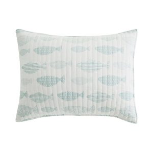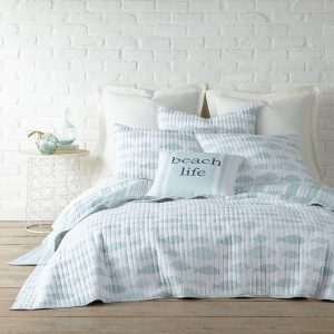 Refresh your space with the Aqua Breeze Reversible Quilt and Sham Set by Levtex Home. Inspired by classic Scandinavian style with a coastal twist, it features aqua and white fish in a pattern-on-pattern design, reversing to crisp aqua and white stripes. Made from the softest lightweight cotton and machine washable, this set brings ocean-inspired comfort and charm to your bedroom for years to come.