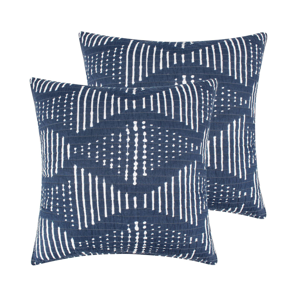 The Bakio Quilted Euro Sham Set of 2 by Levtex Home is inspired by a laid back coastal escape. Offered in navy and white, this design will immediately transform your bedroom. These shams feature navy and white mudcloth geometric. The Euro Sham Set of 2 (26x26in.) is cotton, quilted with a cotton rich filler and is machine washable. Pillow inner not included. Enjoy this for years to come!