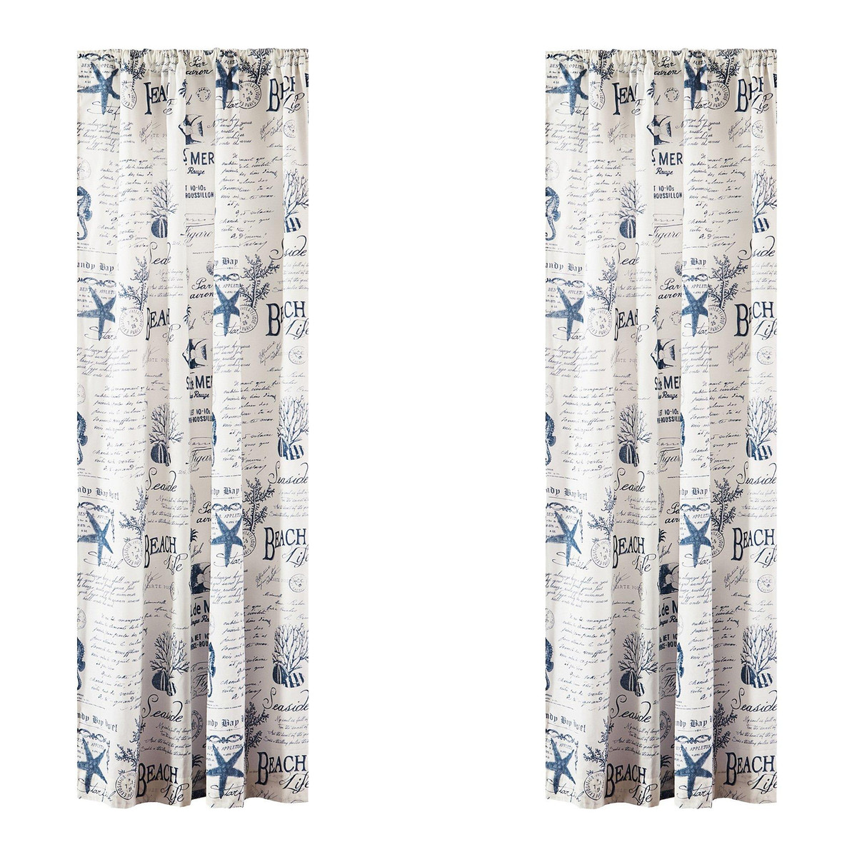 The Beach Life curtain two panel set complements the Beach Life bedding collection and can be used to accessorize any window in your home. These window panels feature a detailed toile featuring coastal references, seahorses, seashells, coral and fish and will complement so many design choices. Made from 100% cotton. Each panel measures approximately 55 x 84 inches.