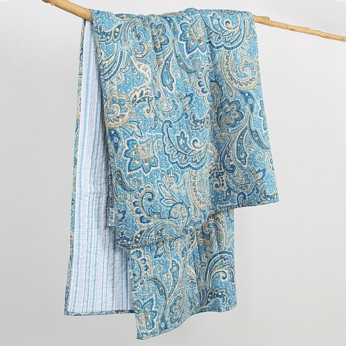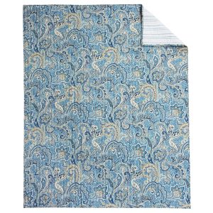 Cozy up in timeless style with the Kimpton Navy Reversible Throw by Levtex Home. Featuring a rich paisley design in deep navy and blue, it adds warmth and elegance to any room. Flip it over for a classic blue stripe when you want a fresh look. Crafted from soft cotton with a plush cotton-rich fill, its perfect for year-round comfort, and it is machine washable for easy care. Measures 50 in. x 60 in.