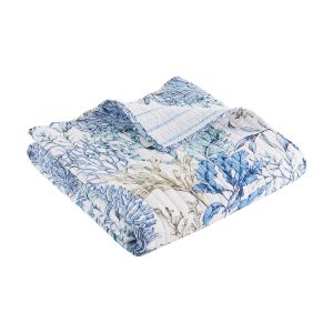 Dive into coastal vibes with the Mahina Reversible Throw by Levtex Home! Bursting with ocean blues, taupe, and white, it features lively coral and sea plants on one side and cheerful blue stripes on the other. Made of soft cotton and filled for cozy comfort, it is perfect for beachy dreamsno snorkel required! Machine washable for easy care. Measures 50 in. x 60 in.