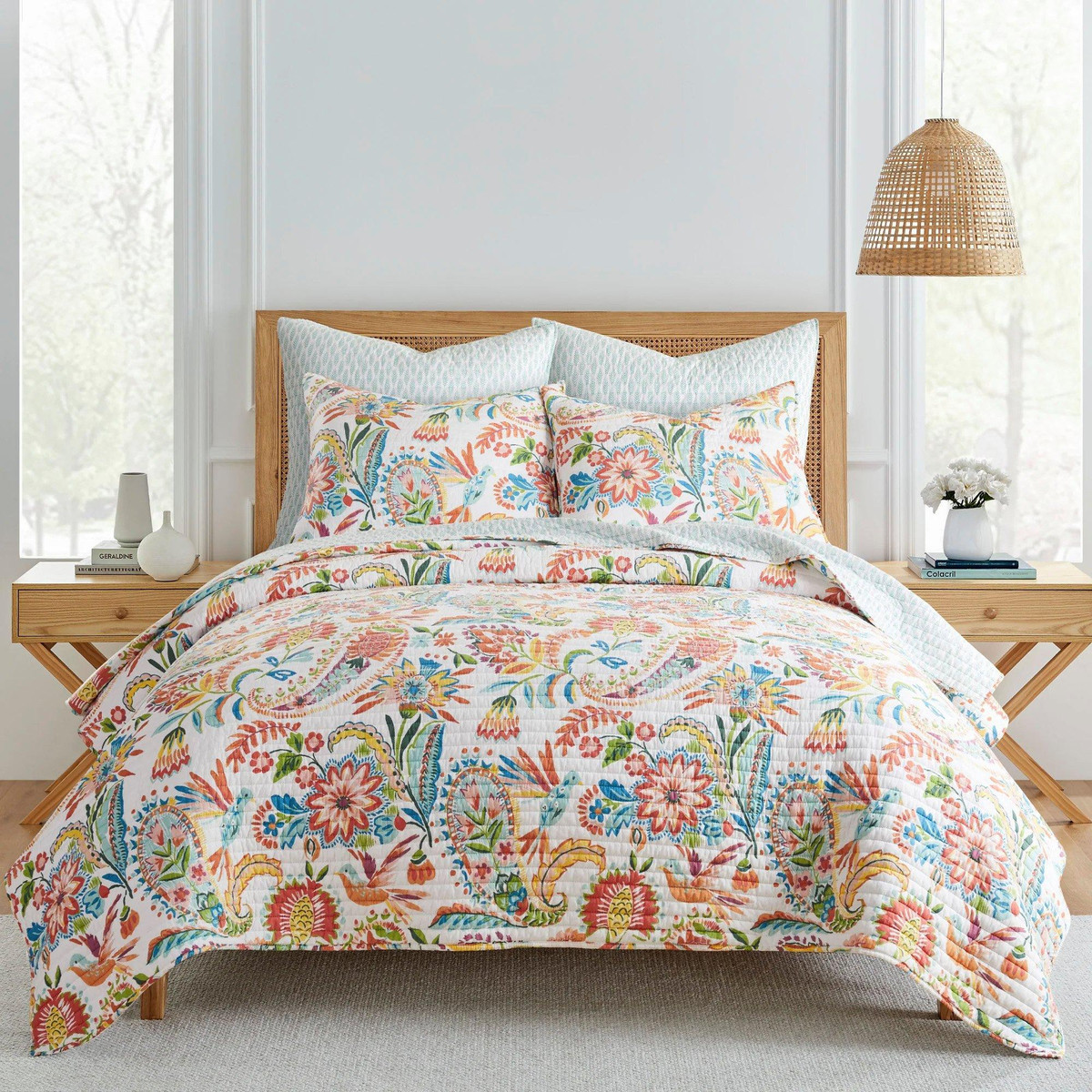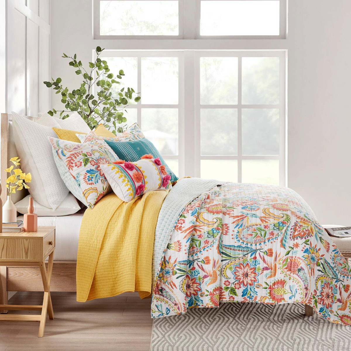 Upgrade your bedroom with the Maravilla King Quilt Set. This 3-piece collection features a bold floral design that brings vibrant energy and refined style to any space. Includes one ultra-soft king quilt and two matching shams. Lightweight, breathable, and perfect for year-round comfortmade for those who expect more from their home.