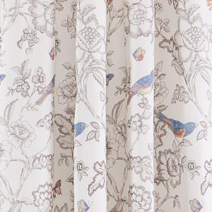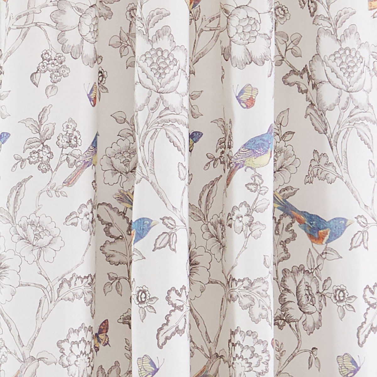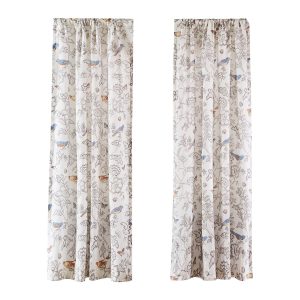 The Mockingbird curtain two panel set complements the Mockingbird bedding collection but can be used to accessorize any window in your home. These window panels feature a gorgeous floral toile in charcoal and white, accented with birds in orange, rust, red, teal and blue and will complement so many design choices. Made from 100% cotton. Panel measures approximately 55 x 84 inches.